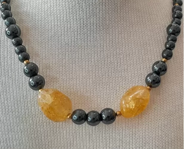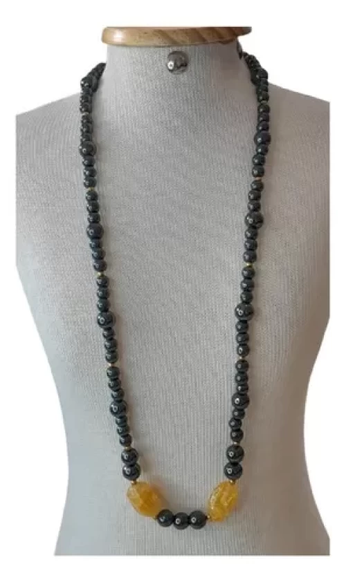Colar Quartzo Citrino Hematita Peça Artesanal Exclusivo C776
