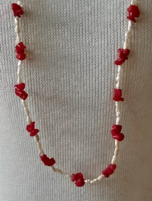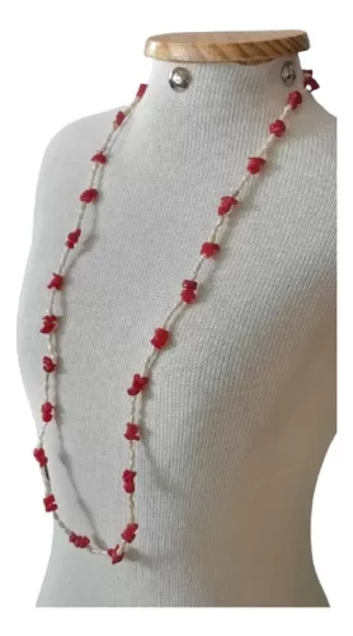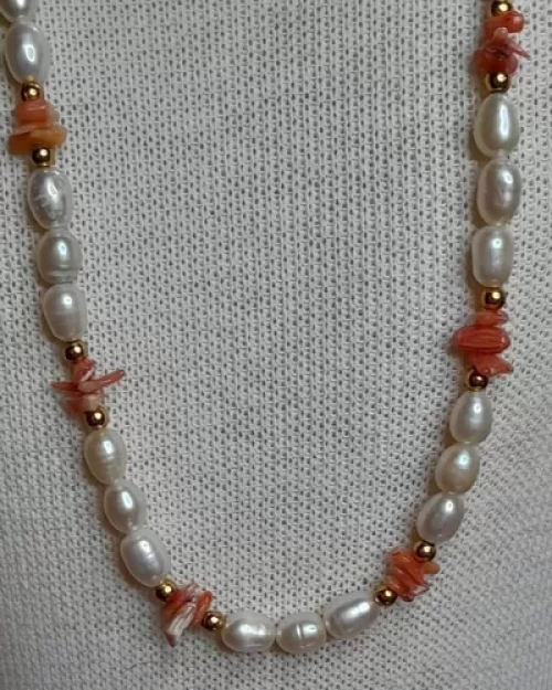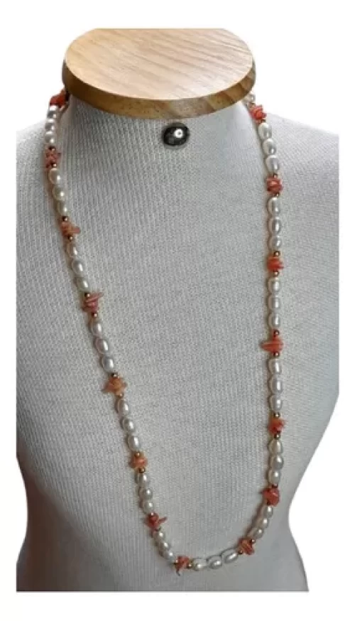 Colar Pérolas Naturais E Coral Artesanal Peça Exclusiva C357