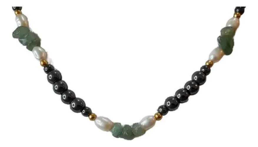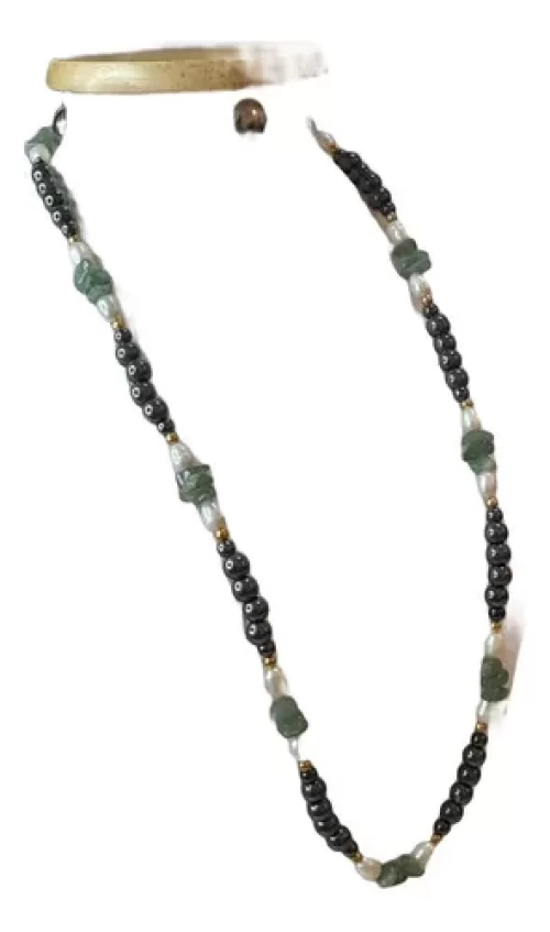 Colar Quartzo Verde Pérola Hematita Artesanal Exclusivo C785