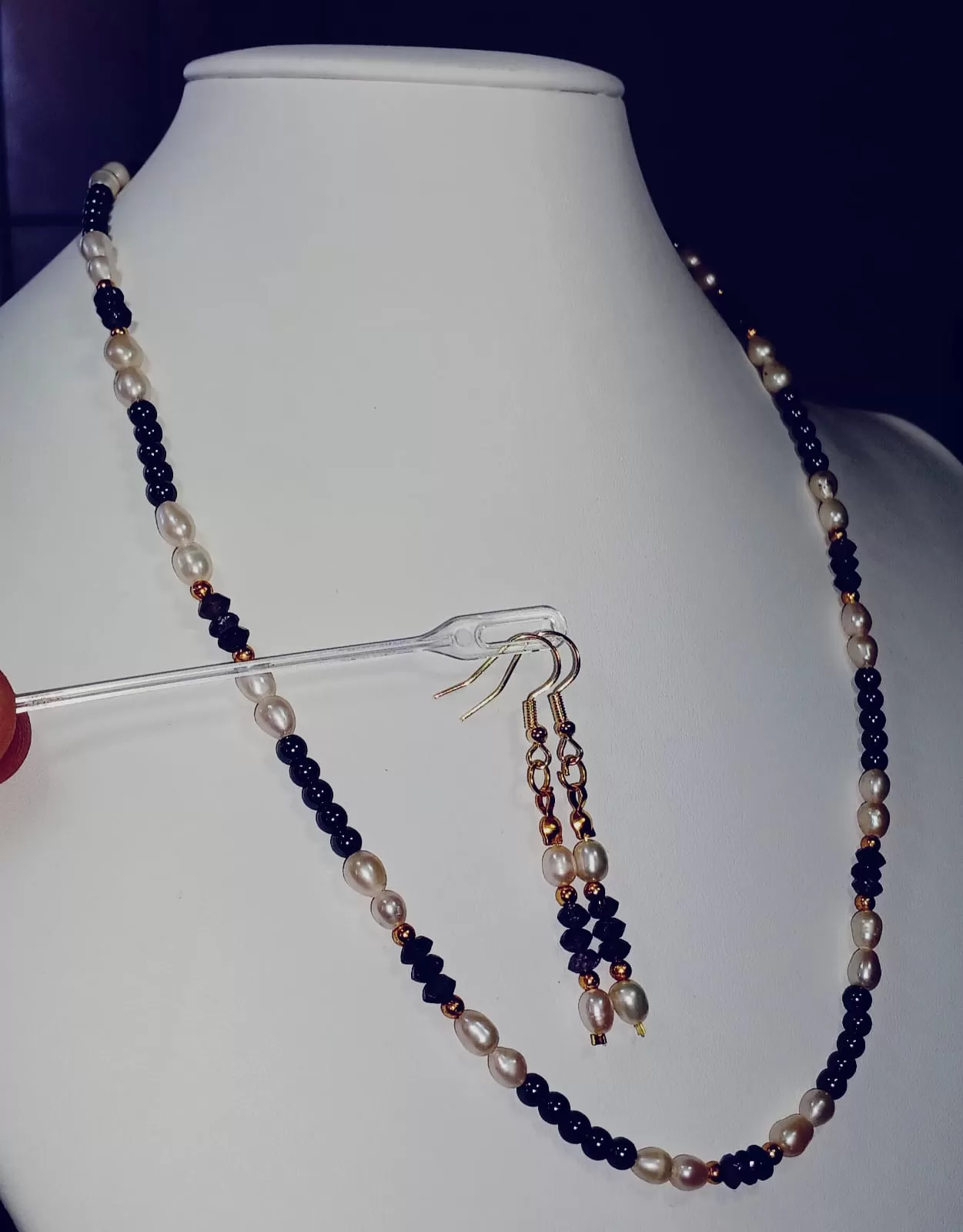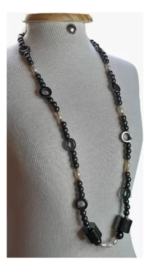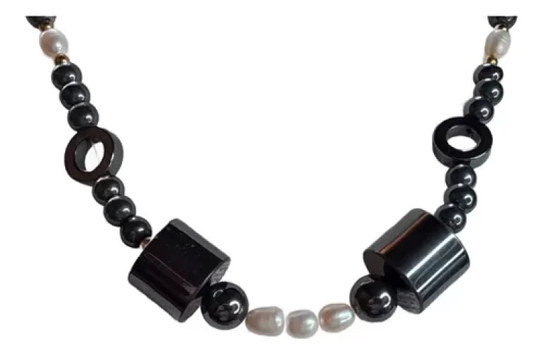Colar Pérolas Naturais E Hematitas Artesanal Exclusivo C782