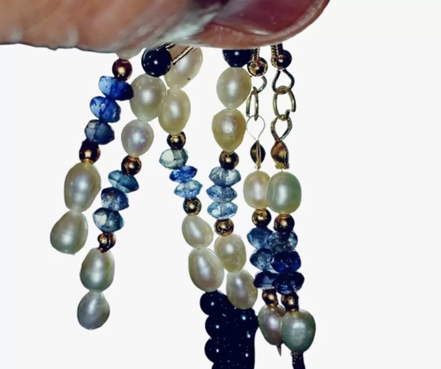 Colar Safiras Lapidação Índia Pérolas Naturais Brinco CB804