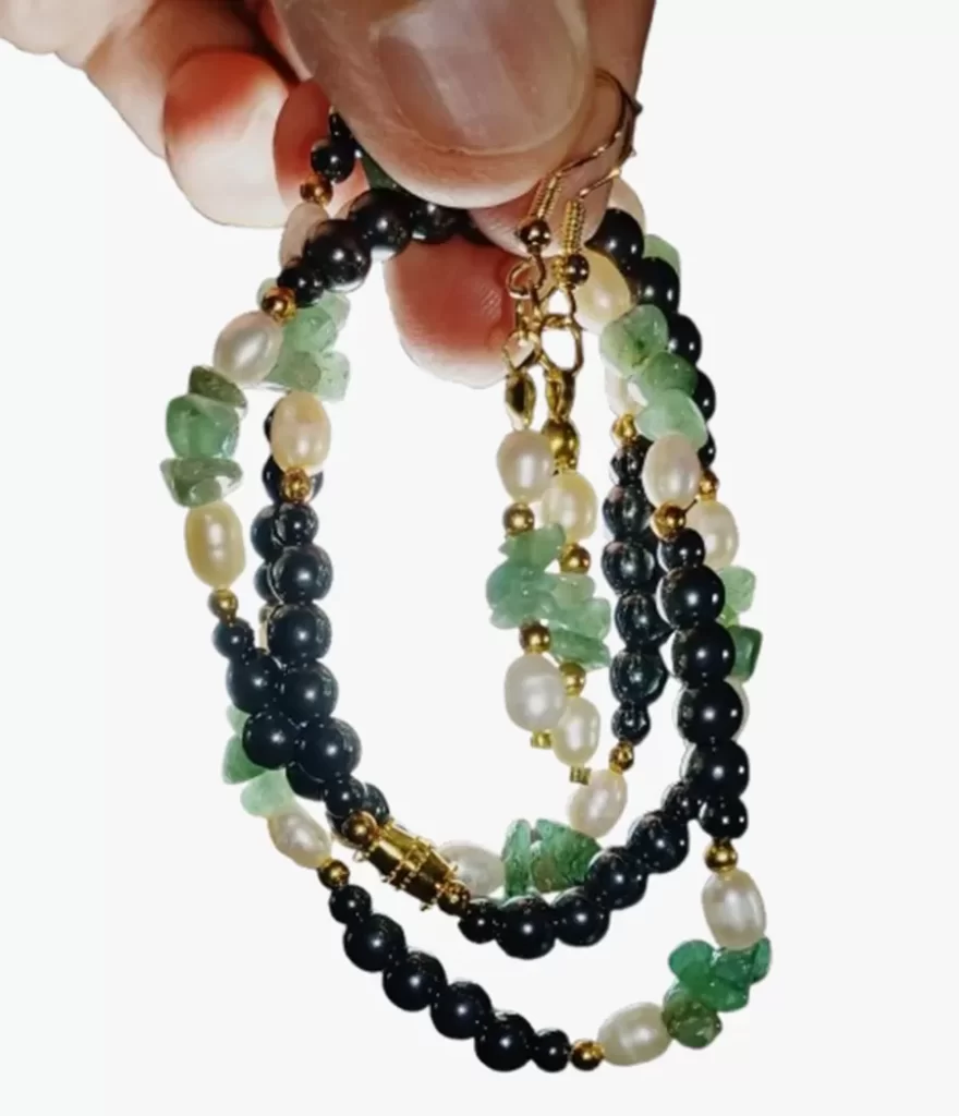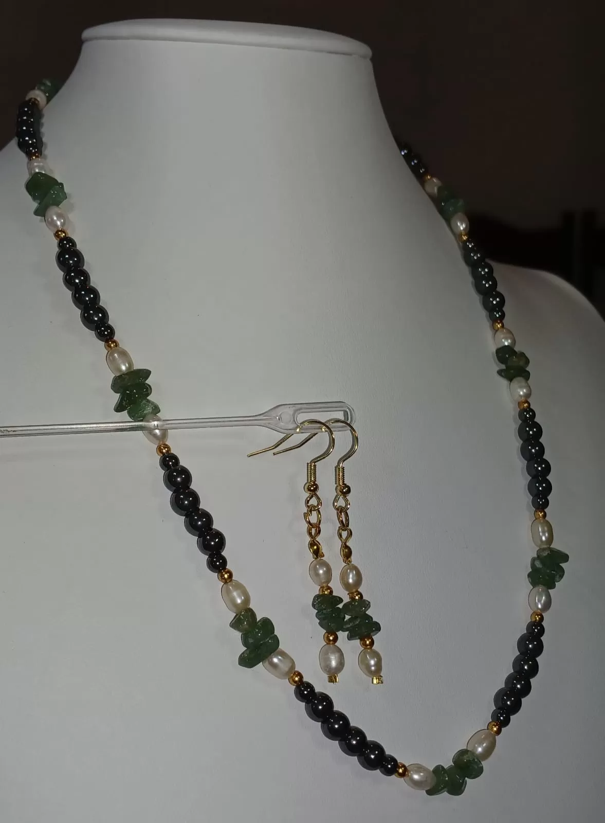 Colar Quartzo Verde Pérolas Hematitas + Brinco Grátis CB785