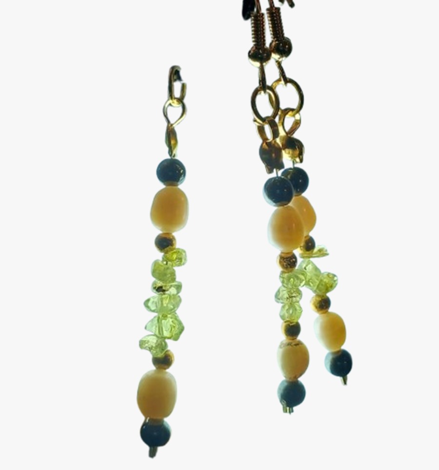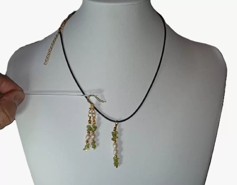 Colar Cordão Pedras Pérolas Olivinas Pingente+ Brinco Cr3544