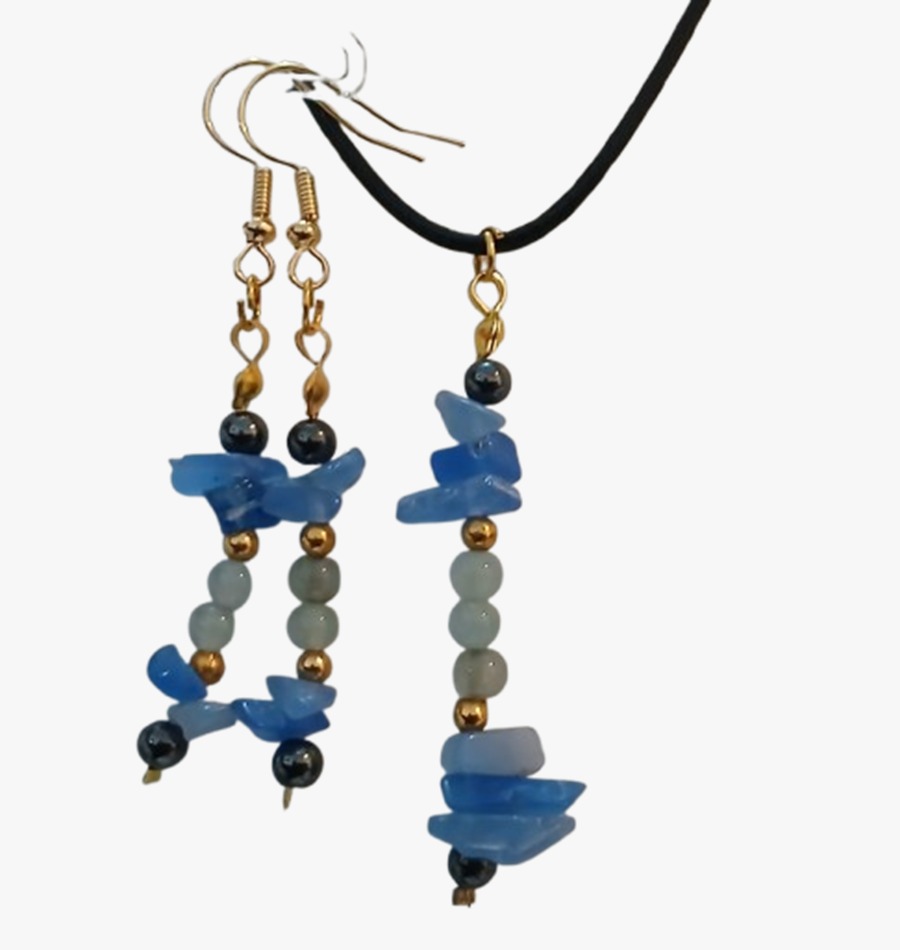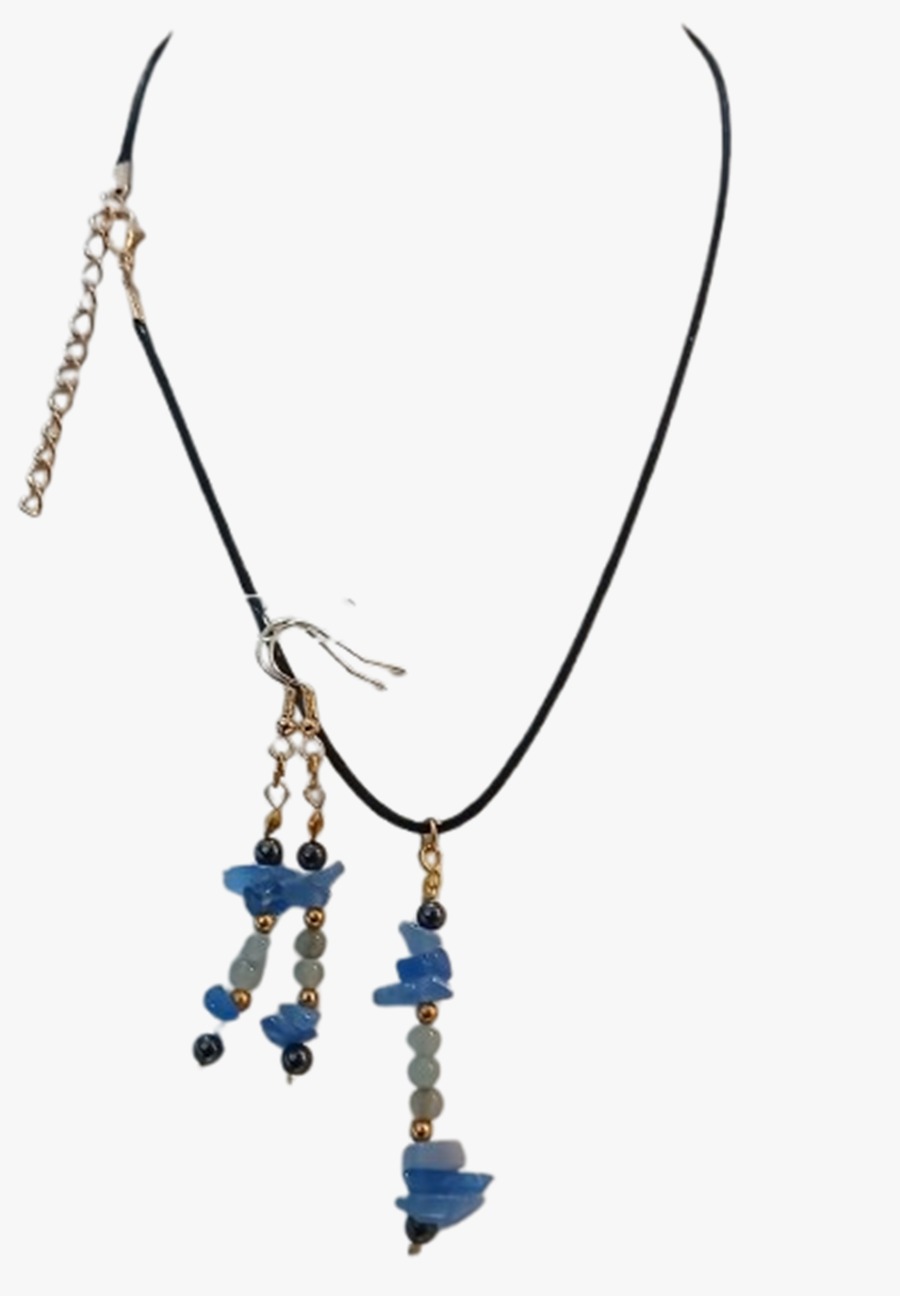 Colar Cordão Pedras Ágata Azul Lapidada e Hematitas Cr761