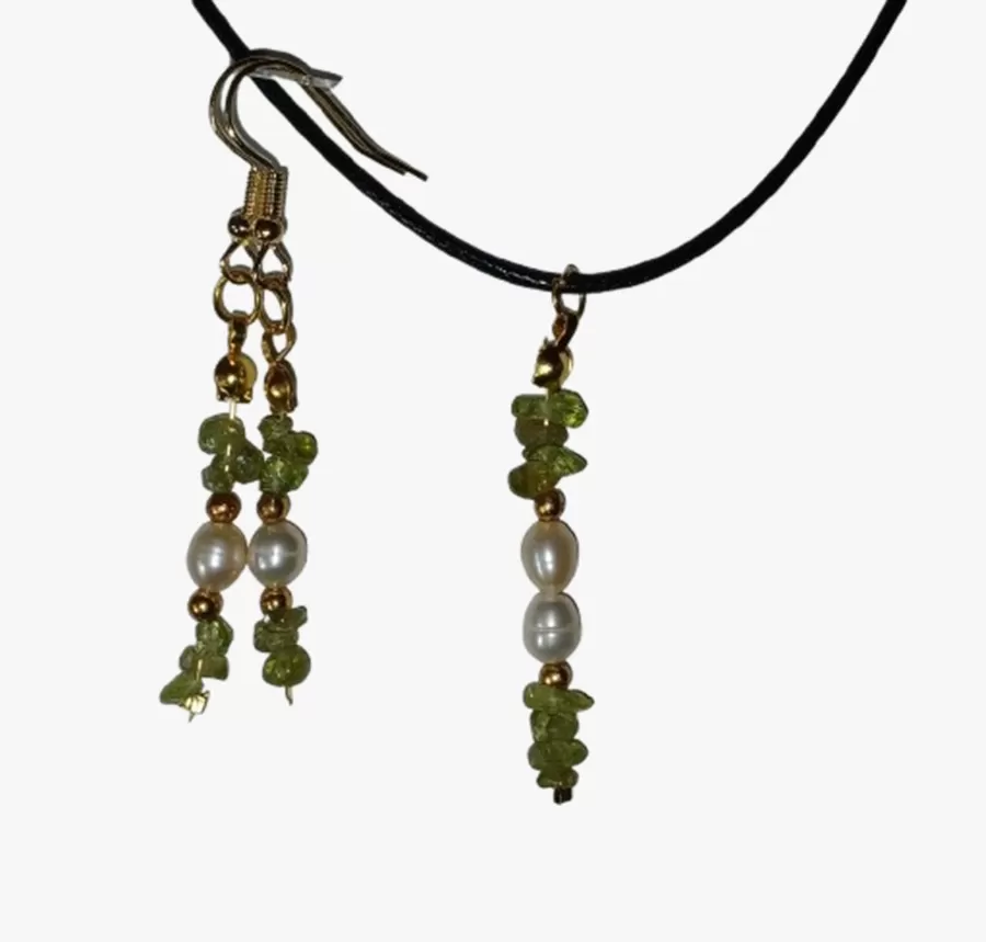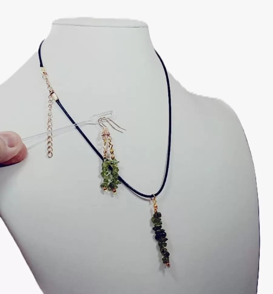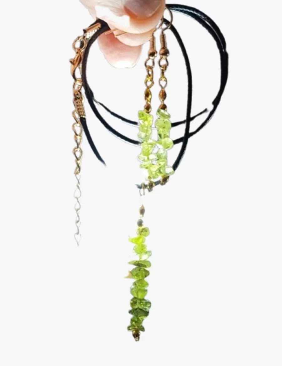 Colar Cordão Pedras Naturais Olivinas Pingente Brincos Cr838