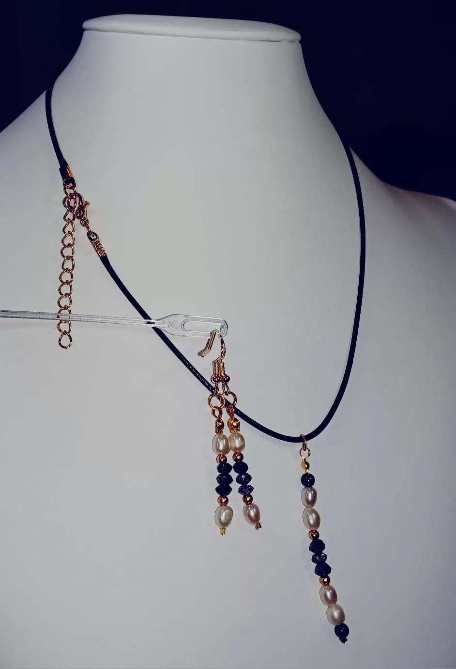 Colar Cordão Pedras Preciosas Safiras Azuis e Pérolas Cr804