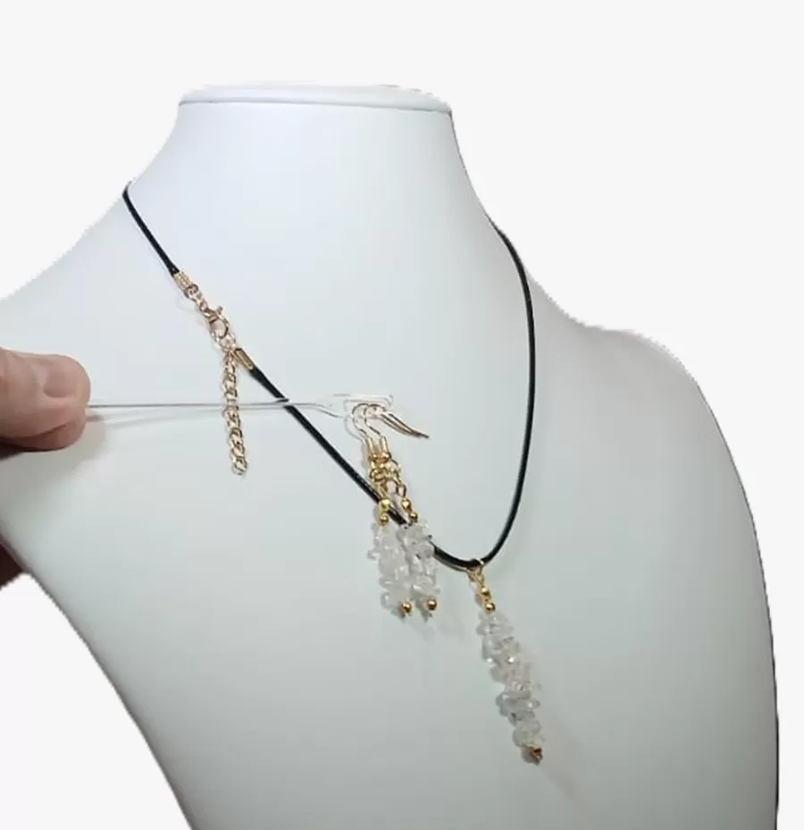 Colar Cordão Pedras Cristal Quartzo 7° Chakra + Brinco Cr847