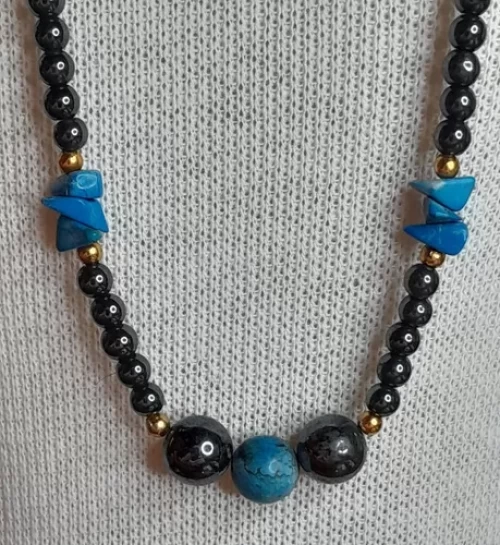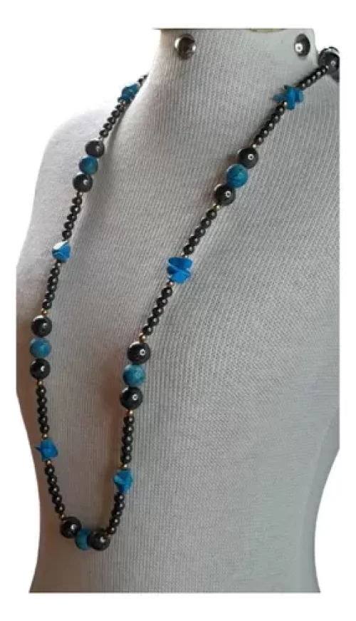 Colar Hematitas Howlit Cor Azul Turquesa Peça Exclusiva C623