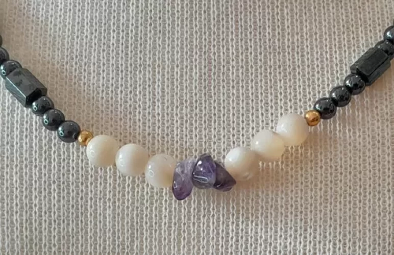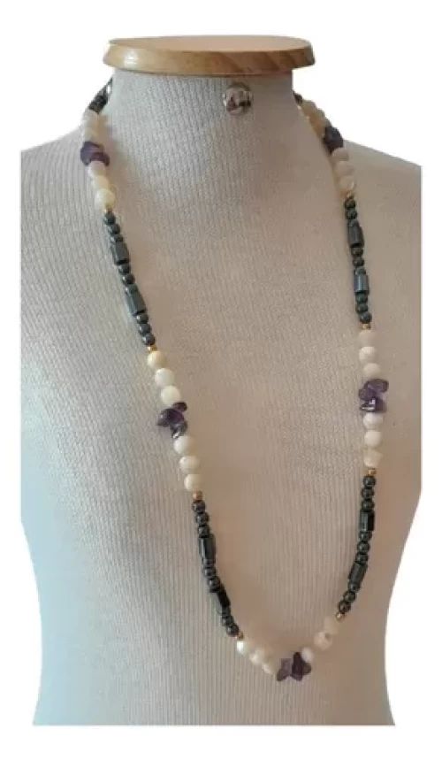 Colar Madre Pérola Ametista E Hematita Peça Exclusiva C755