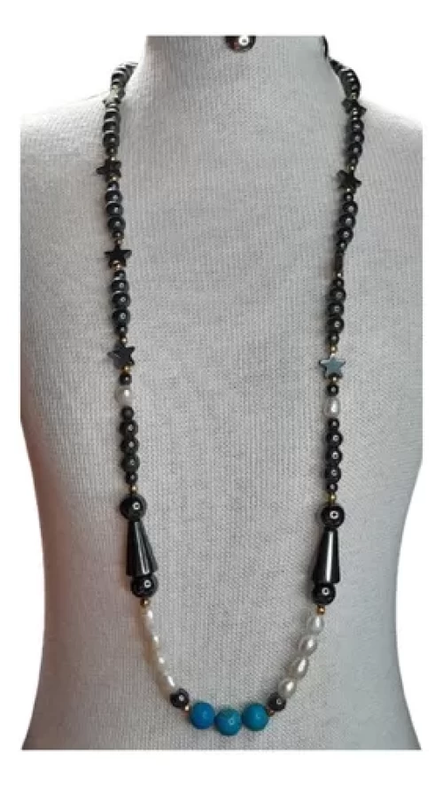 Colar H/turquesa Pérolas Hematitas Artesanal Exclusivo C766