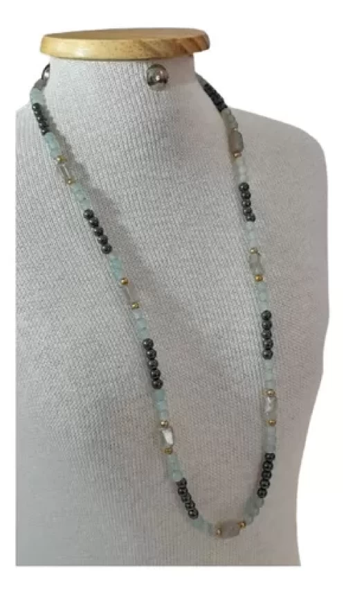 Colar Labradorita Olivina Hematita Artesanal Exclusivo C792