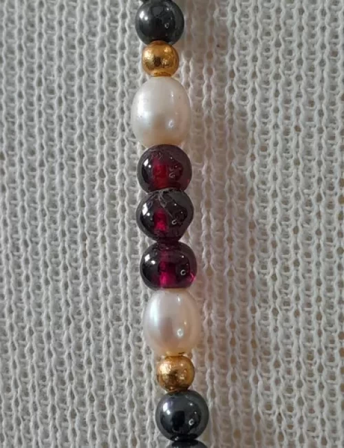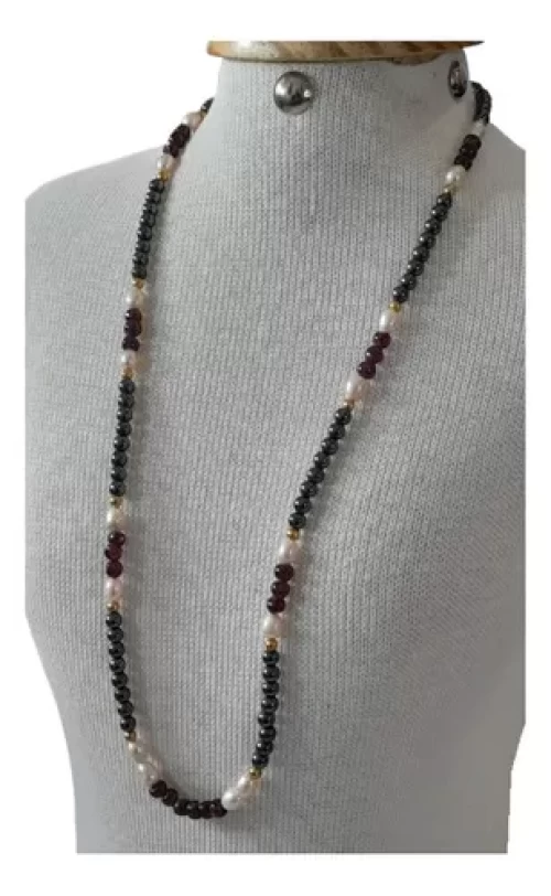 Colar Granadas Pérolas Hematitas Artesanal Exclusivo C797