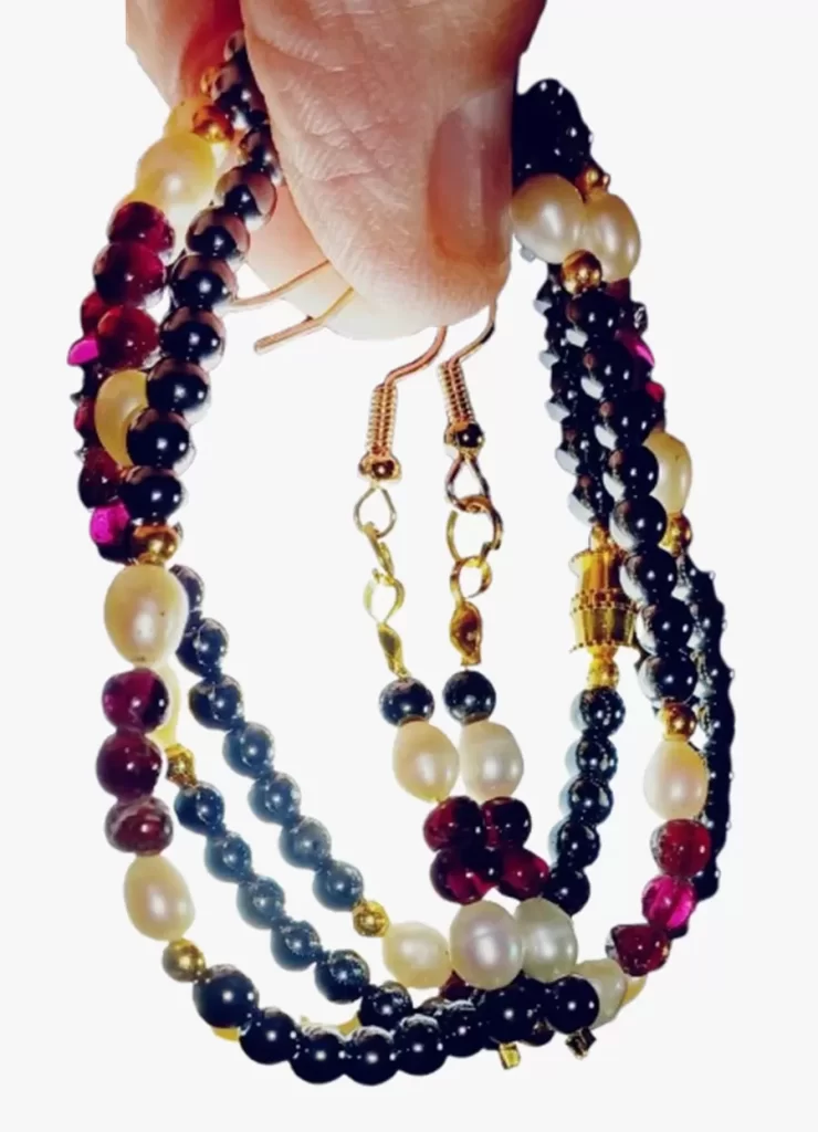 Colar Granadas Vinho Lapidação Índia Pérolas + Brinco CB797