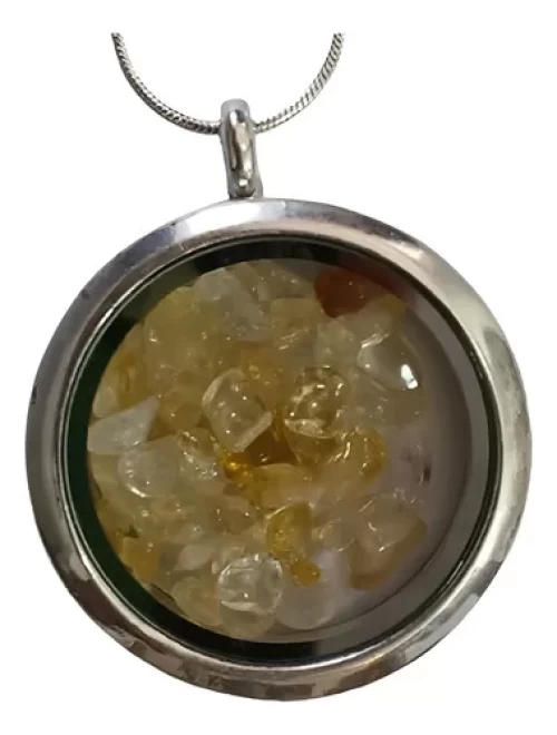 Corrente Prata Ping Citrino Escapulário Dif. Aromático Qc835