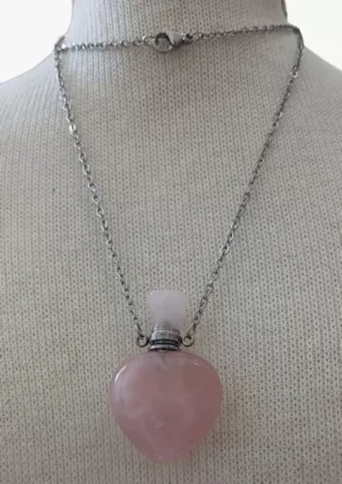 Colar Corrente Aço Difusor Aromático Quartzo Rosa Heart C832