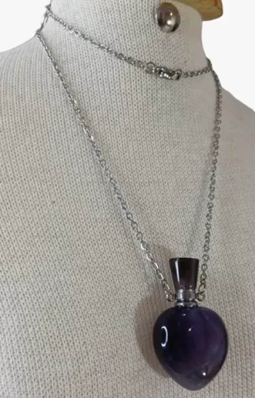 Colar Corrente Difusor Aromático Pedra Ametista Coração C833