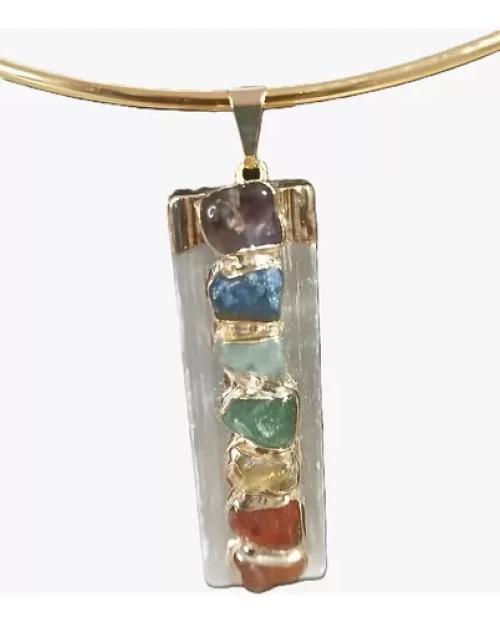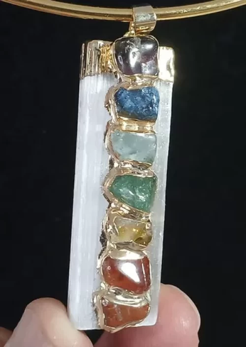 Lindo Pingente Selenita E Pedras Chakras C Banho Ouro Pg811