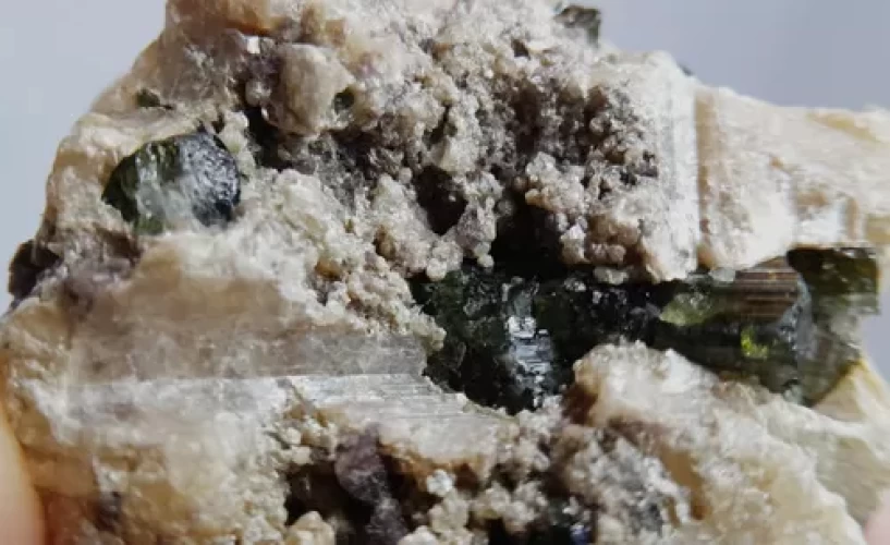 Turmalina Verde Verdelita Na Albita C/ Inclusão Mica 4139 M