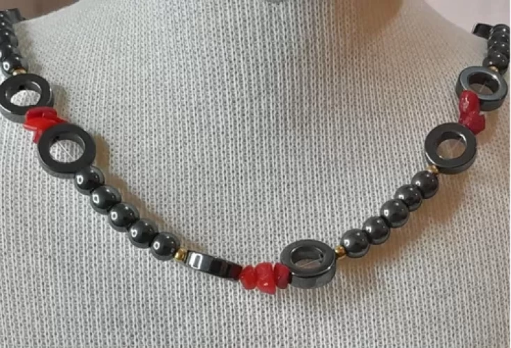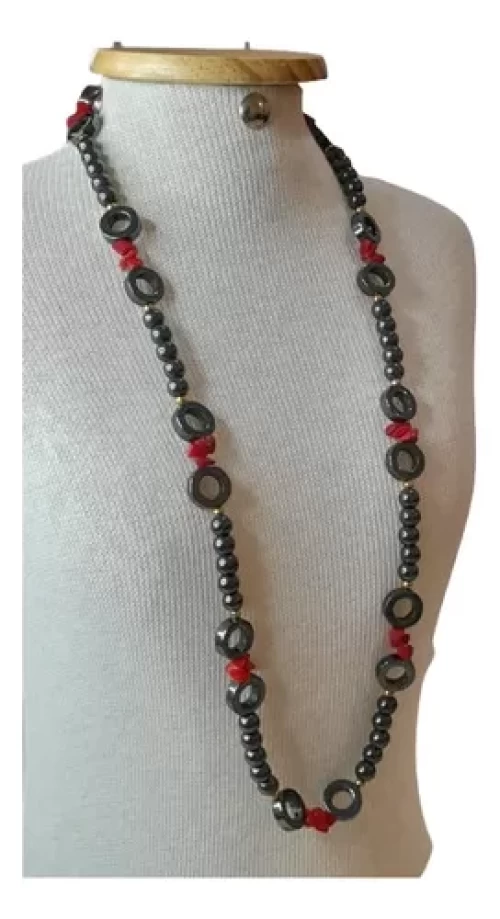 Colar Coral Vermelho E Hematitas Artesanal Exclusivo C769