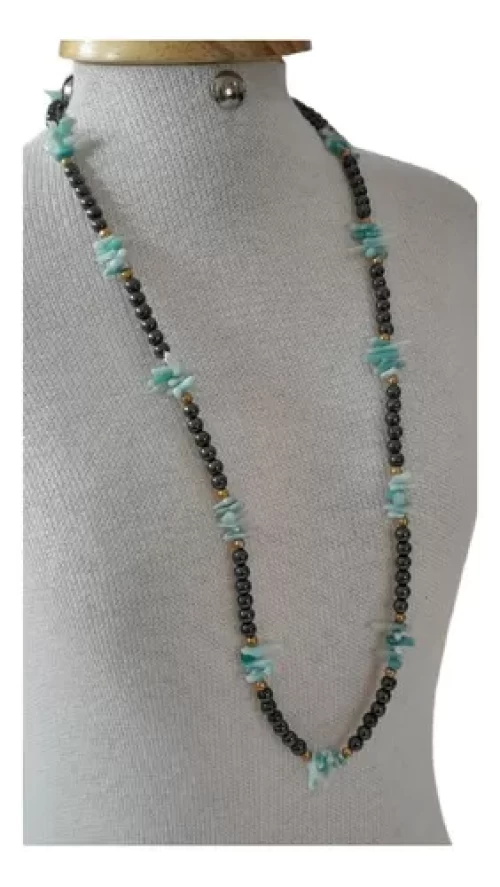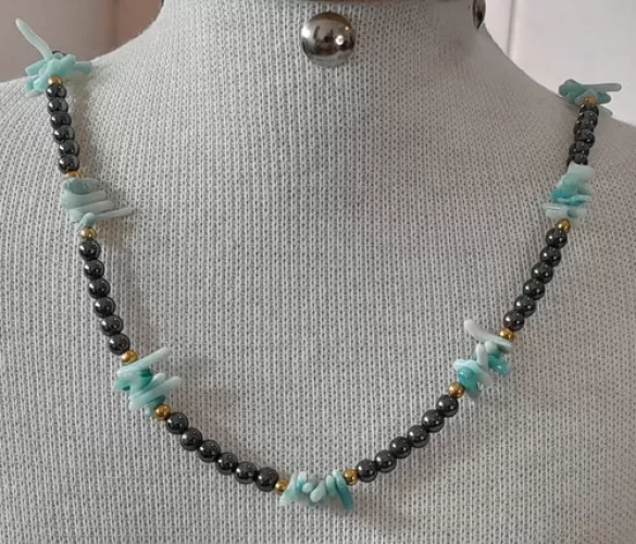 Colar Coral Cor Azul E Hematitas Artesanal Exclusivo C798