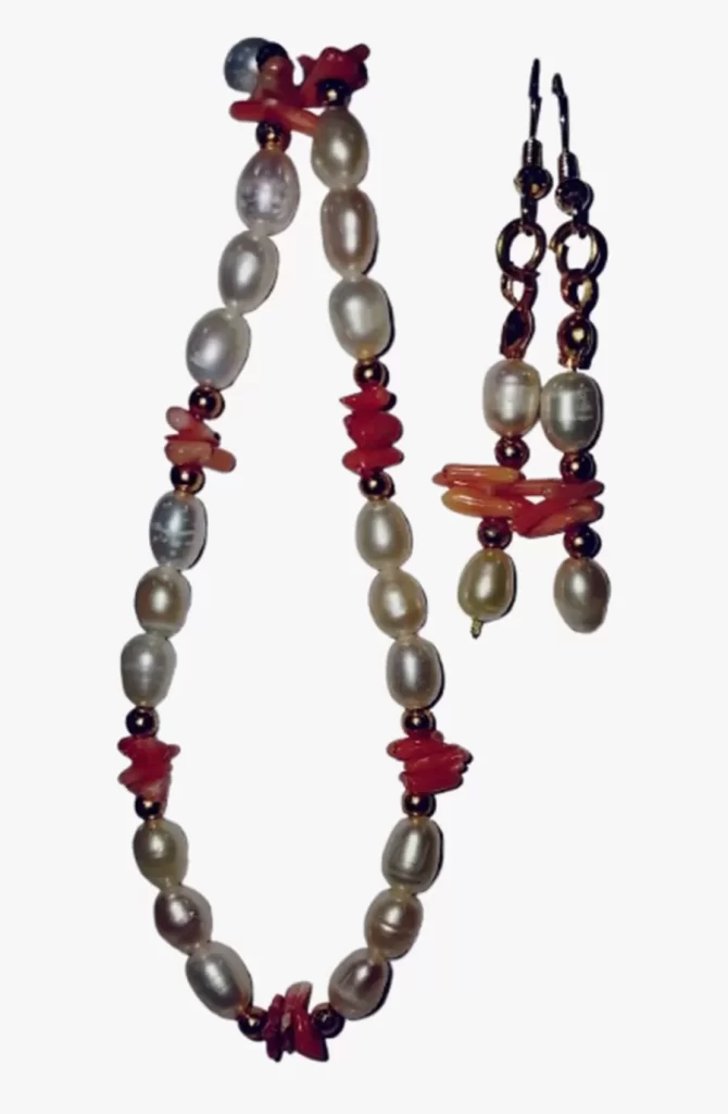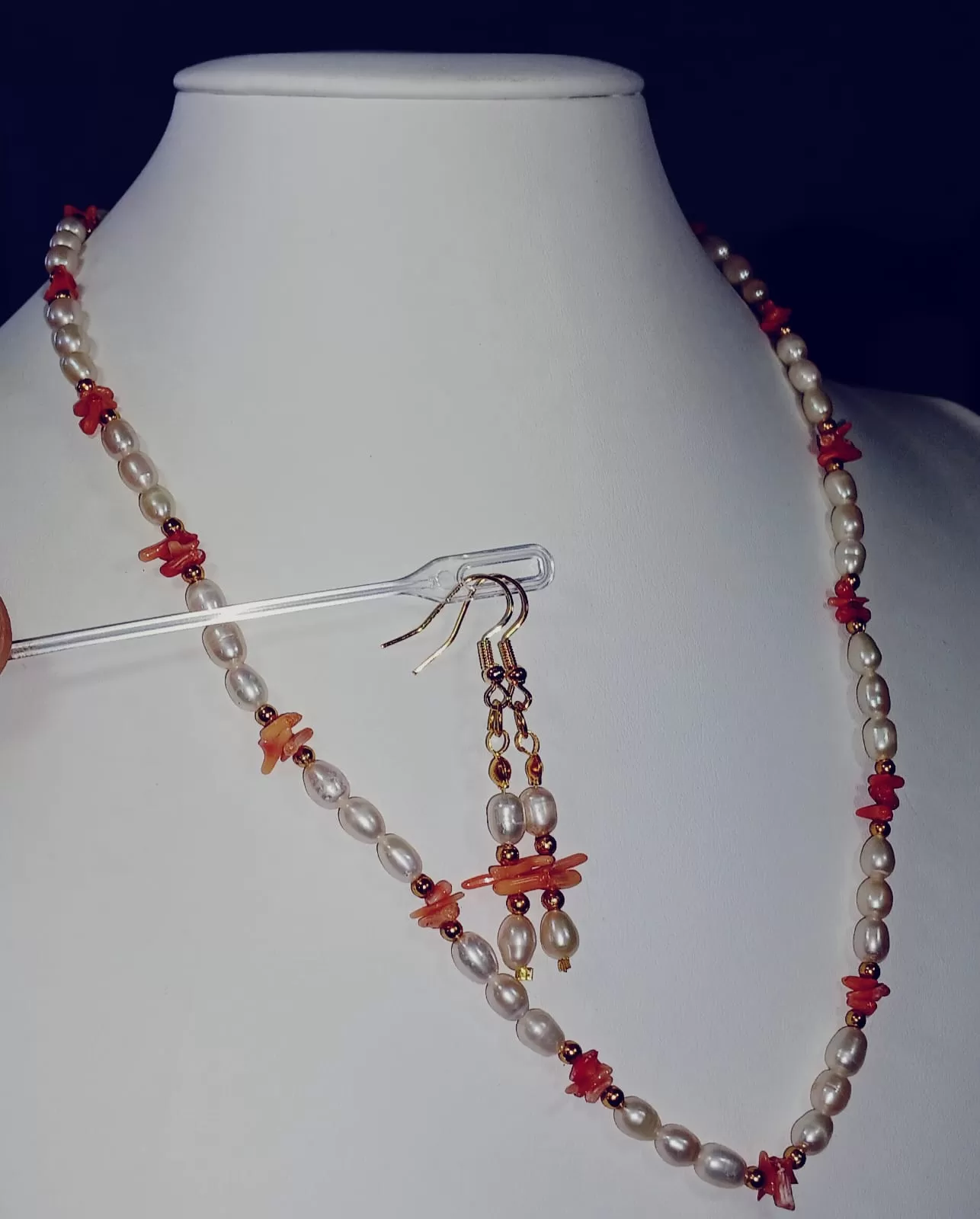 Colar Coral Filipinas e Pérolas Naturais Brico Grátis CB614