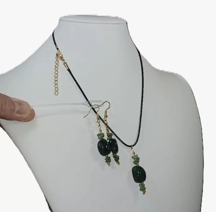 Colar Cordão Ágata e Quartzo Verde Pingente Brinco Cr837