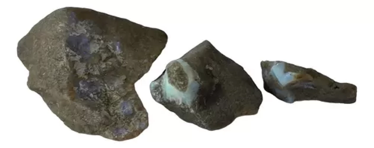 Kit com 3 Opalas Multicores com Predominância de Azul Claro e Lilás na Rocha Matriz. Linda Peça para Colecionador.