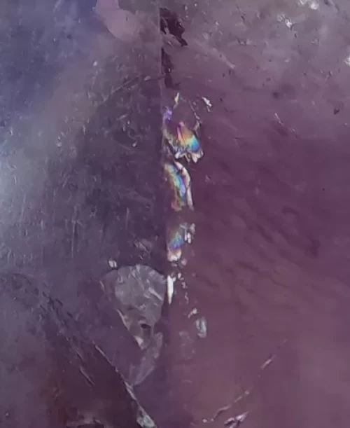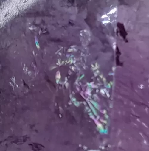 IRIDESCÊNCIA (ARCO-ÍRIS) em mineralogia refere-se à propriedade física de alguns minerais exibirem cores de arco-íris quando a luz interage com sua superfície ou estrutura interna. Este fenômeno óptico, também conhecido como “furta-cor”, é causado pela interferência da luz, resultando em diferentes cores sendo refletidas dependendo do ângulo de observação.