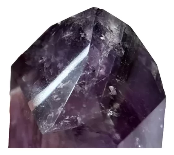 Linda Ponta de Ametista Cor Extra com Pequeno Arco-Íris (Fenômeno de Iridescência). Peça para Colecionadores.