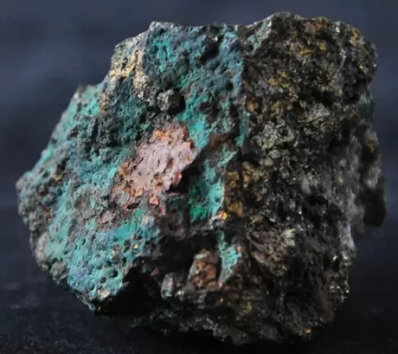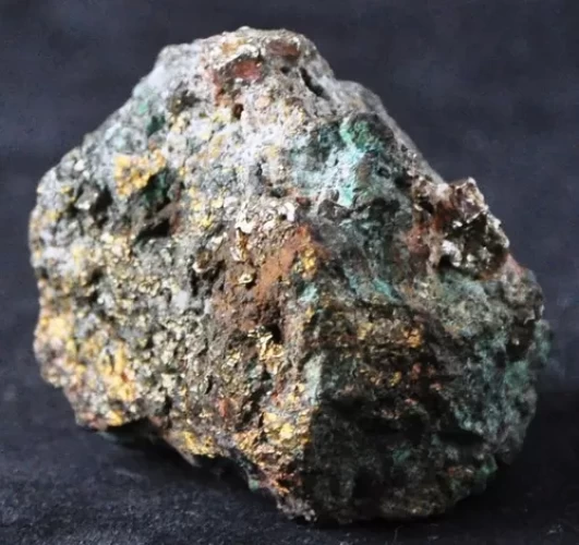 Calcopirita com Malaquita na Rocha Matriz Spécimen Mineral de Coleção.