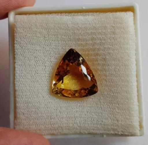 Quartzo-citrino. Var. gemológica de quartzo de cor amarelada, alaranjada ou marrom. É, muitas vezes, obtida por aquecimento de ametista ou quartzo enfumaçado. O quartzo citrino é o substituto mais comum do topázio, constituindo 80% das gemas vendidas como topazio. O principal produtor é o Brasil, os estados de Goiás, Minas Gerais, Bahia e Espírito Santo. Sin.: Topázio Rio Grande. Cristaloterapia: Citrino é a Pedra da prosperidade e abundância. Atrai riquezas da terra e favorece o poder mental, trazendo boa sorte aos negócios e trabalhos.