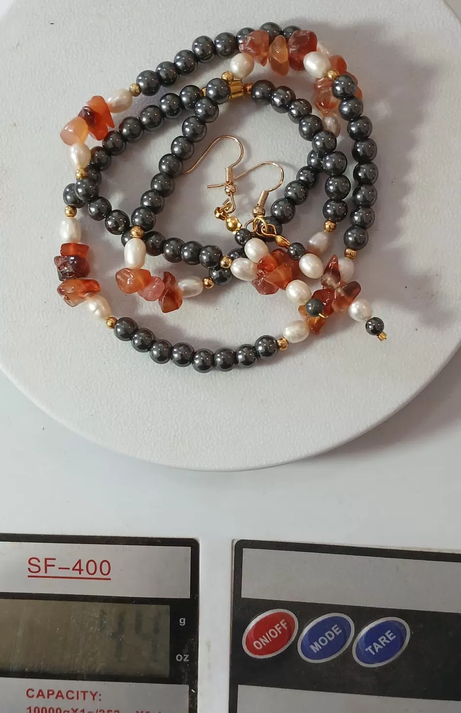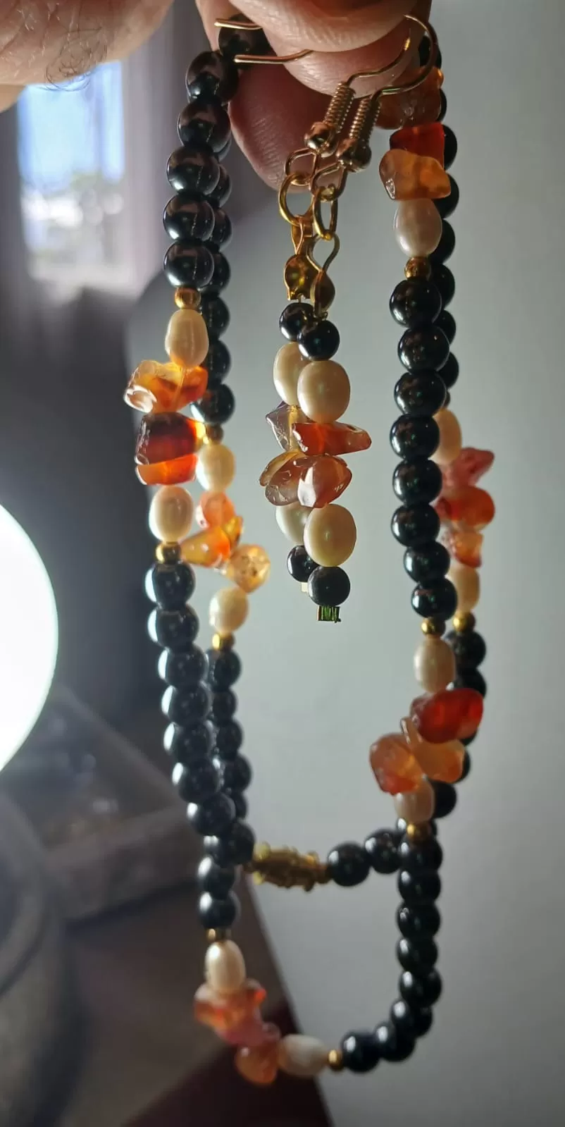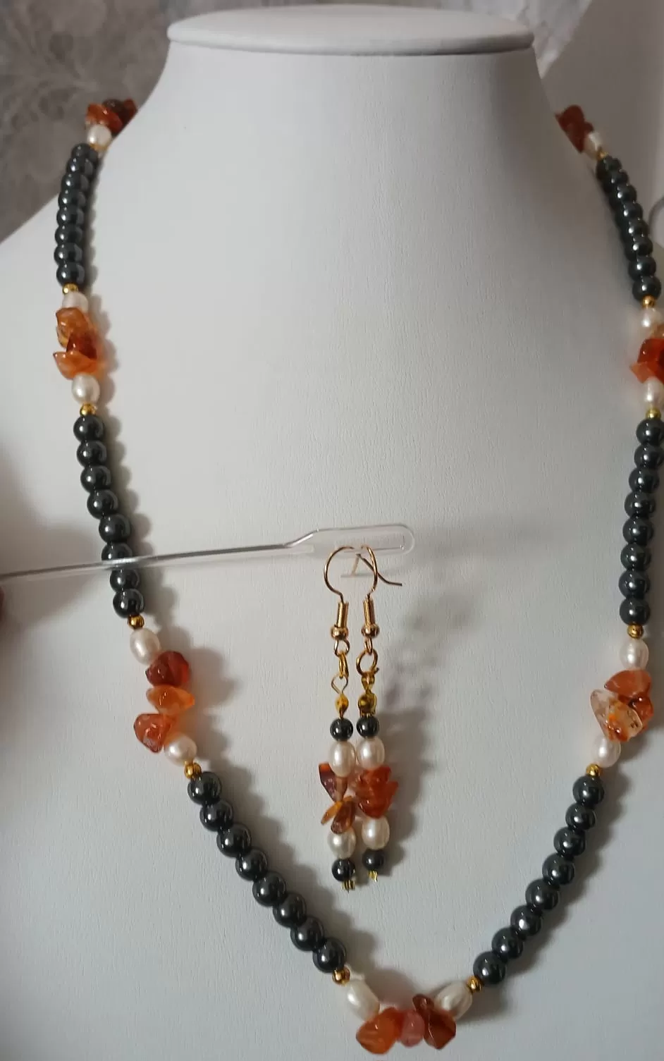 Colar Ágata Fogo Pérola Hemati Artesanal Brinco Grátis CB781