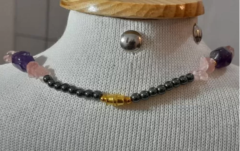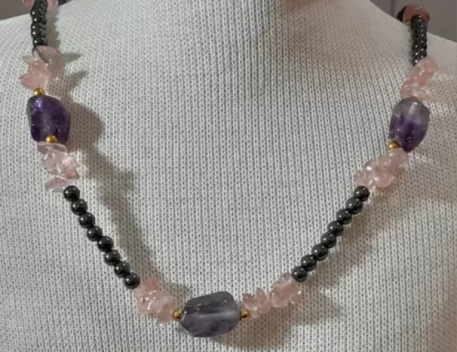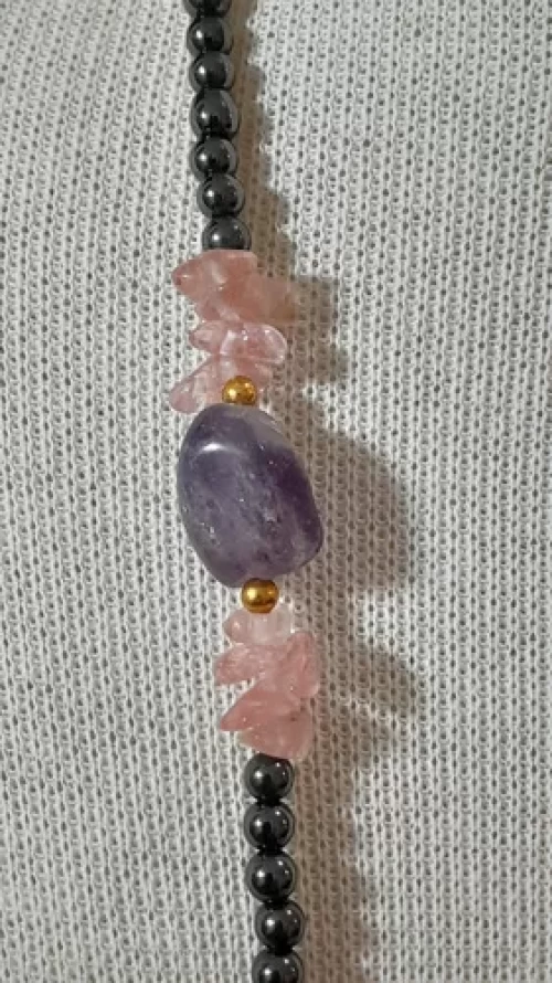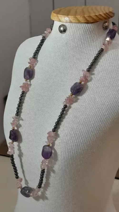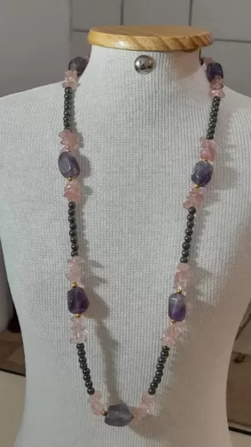 Colar Ametista Quartz Rosa Hematita Artesanal Exclusivo C794