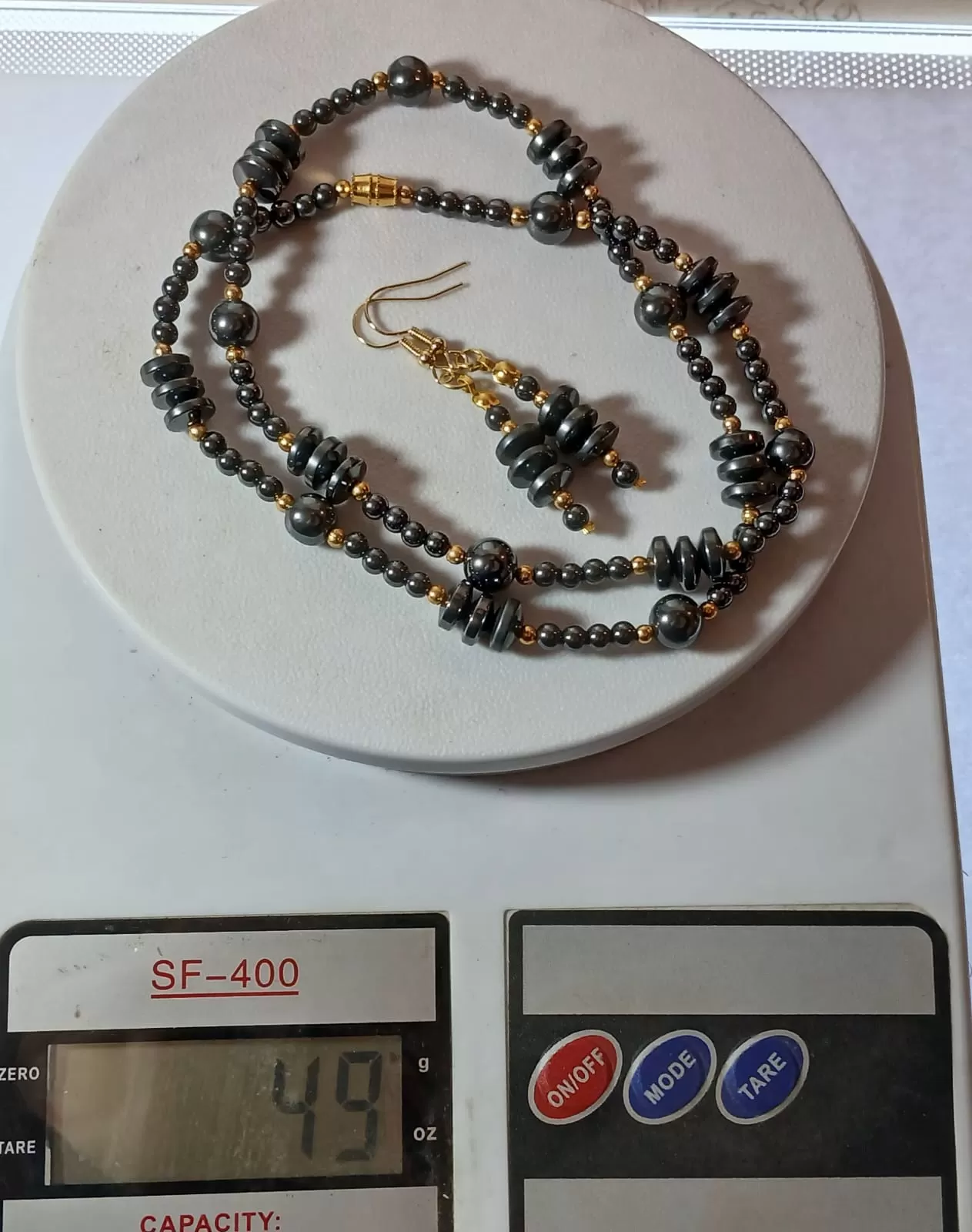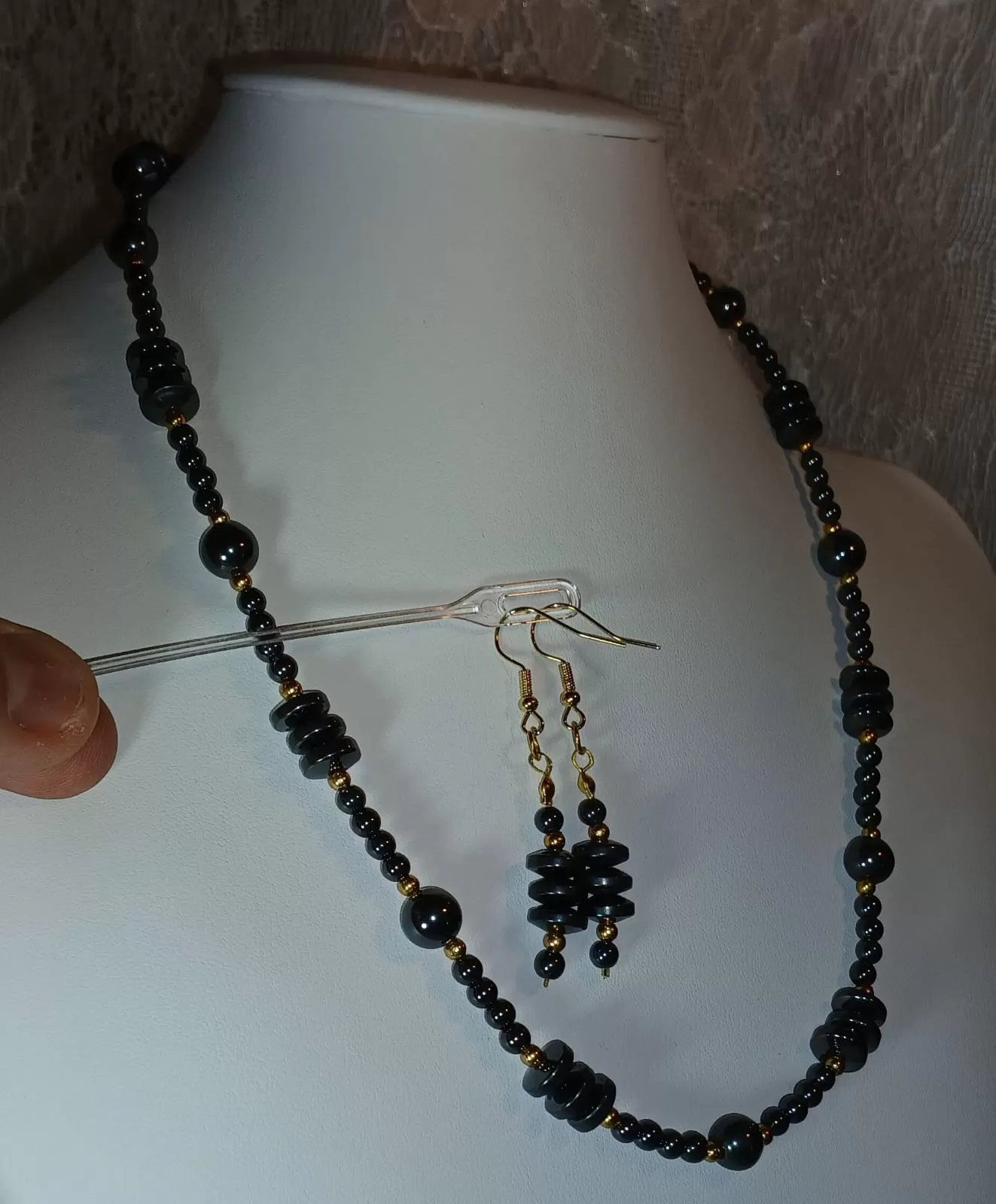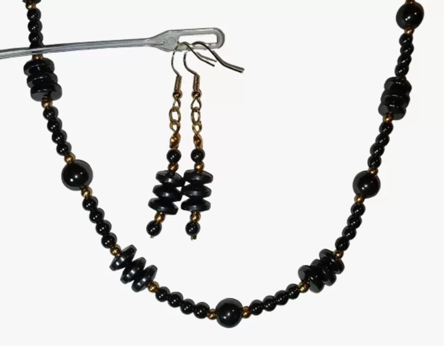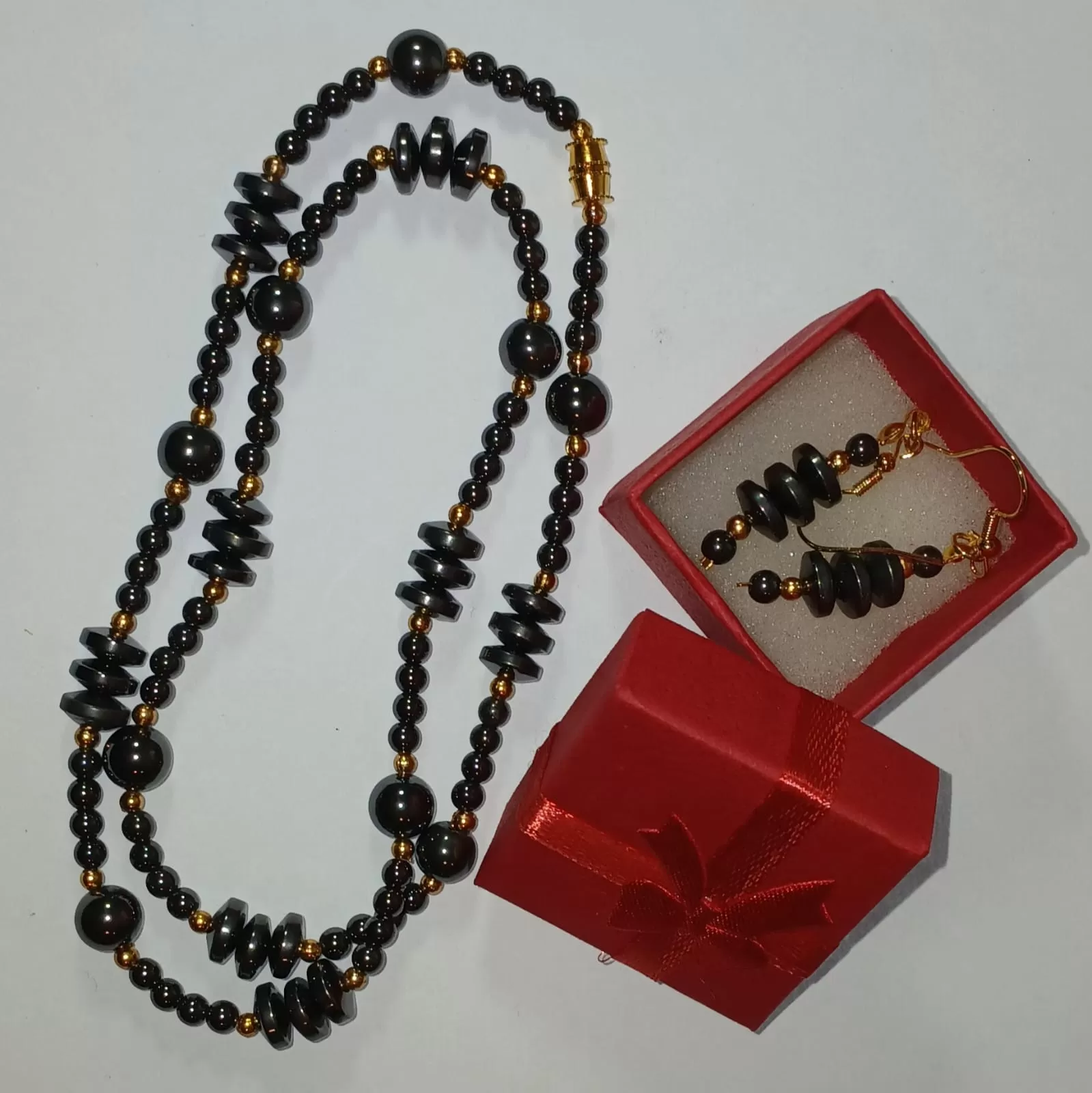 Colar de Pedras Hematitas Lapidadas com Brinco Grátis.