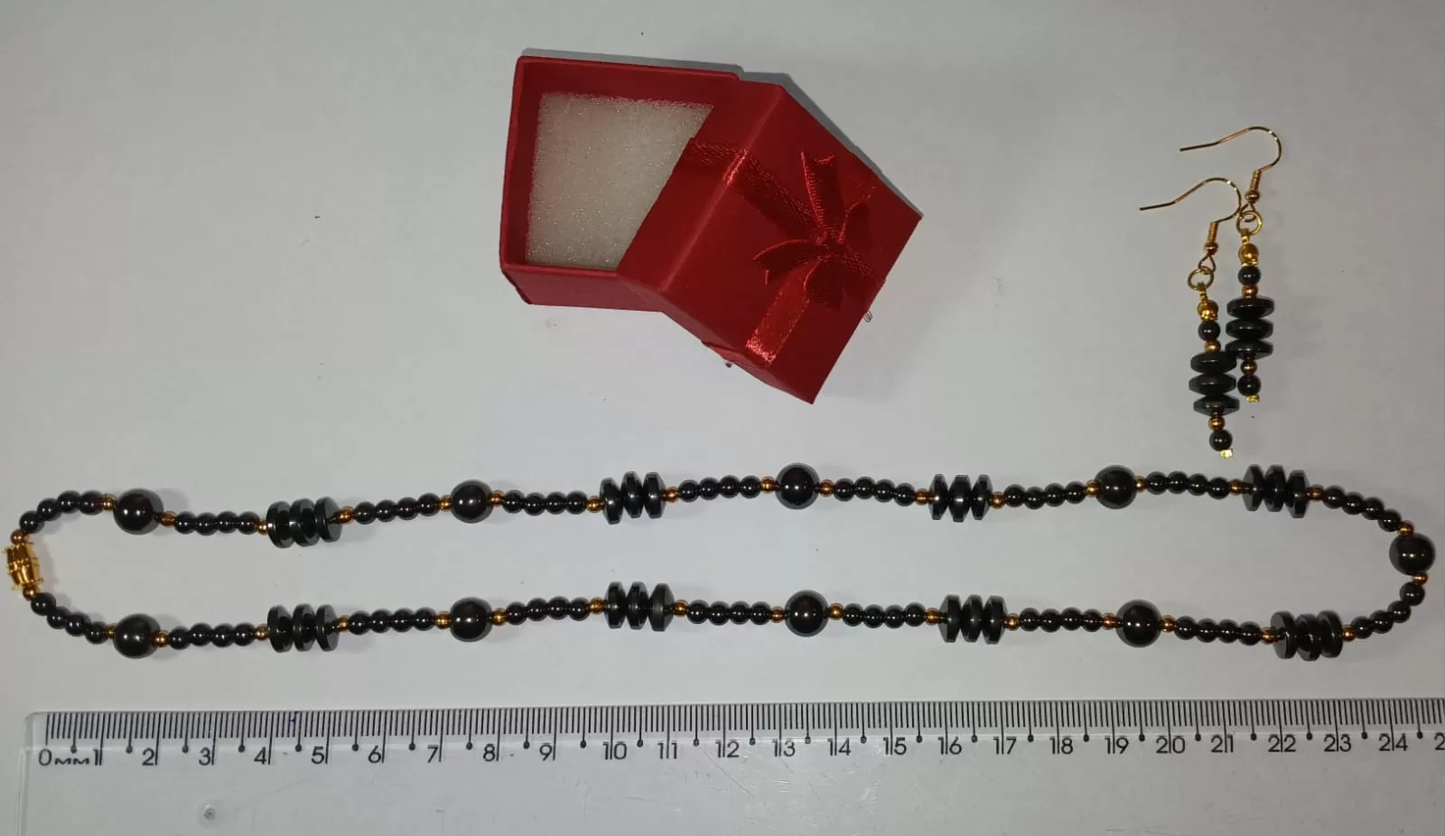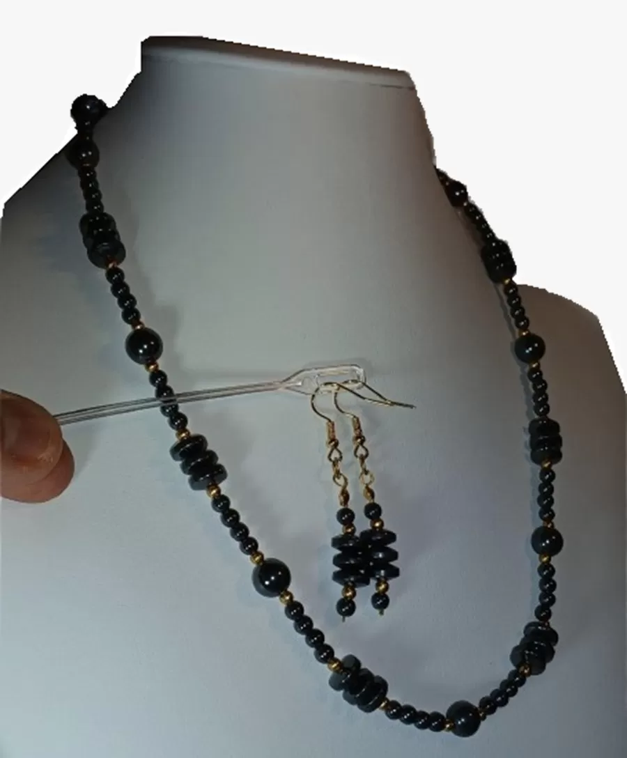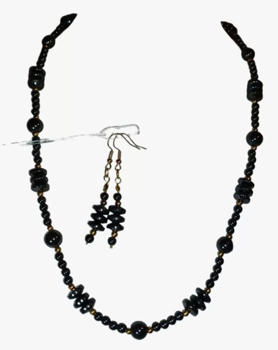 Colar de Pedras Hematitas Lapidadas com Brinco Grátis.