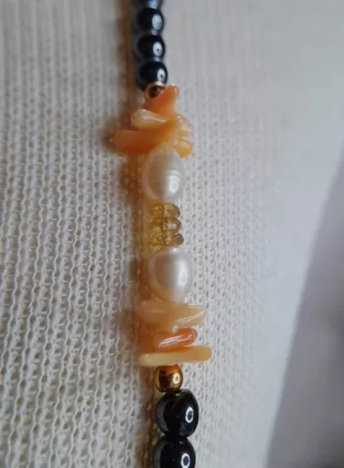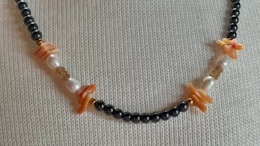 Colar Citrino Pérola Coral Hematita Exclusiva Artesanal C617