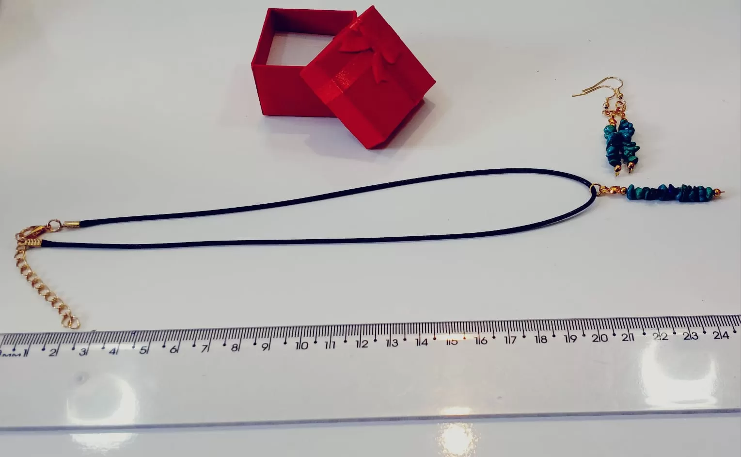 Colar aberto 50cm – Brinco 2,5cm – Colar Fechado 22cm + Pingente 3,5cm