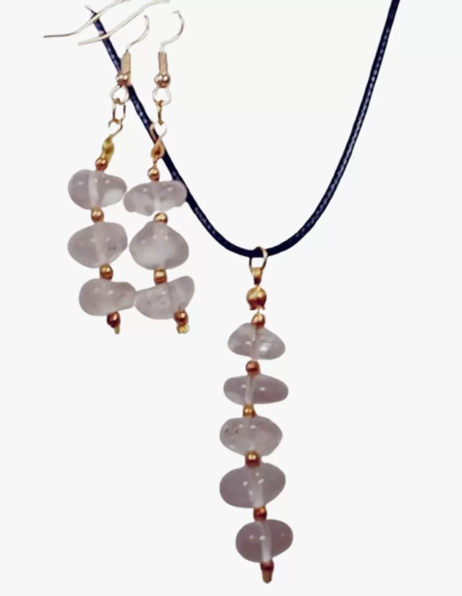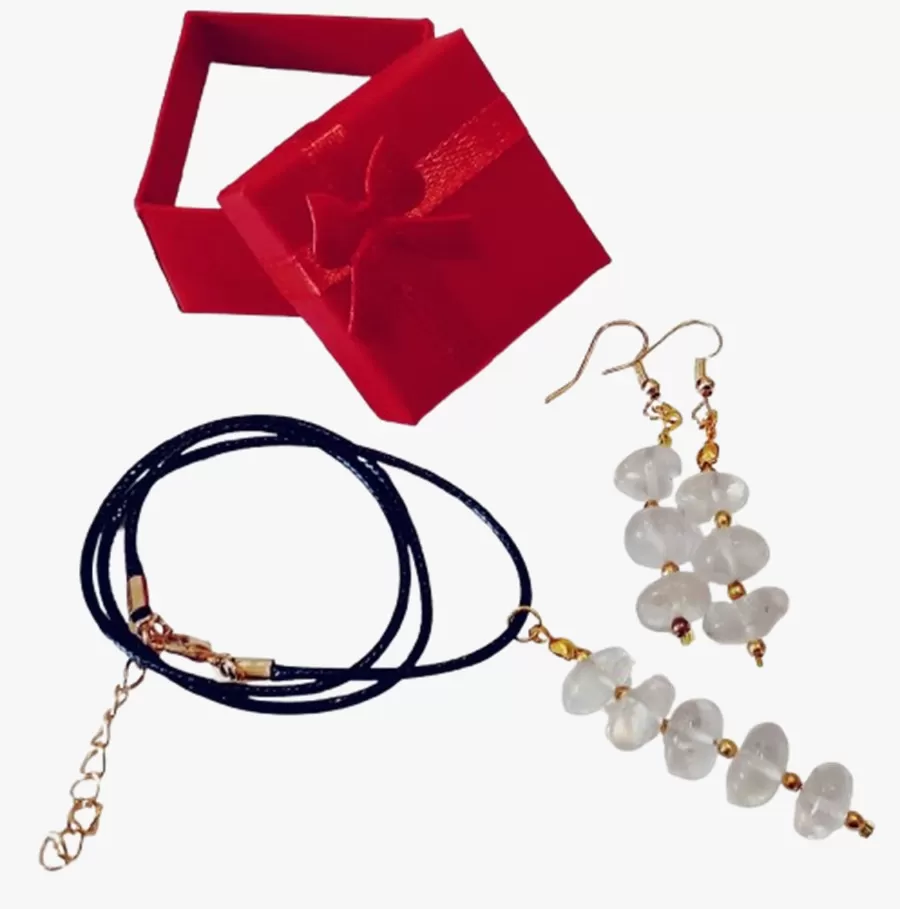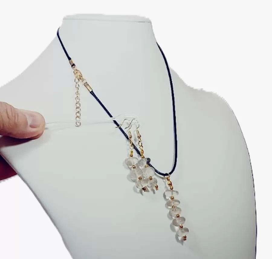 Colar Cordão Pedra Cristal Quartzo + Pingente e Brinco 7° CHAKRA CORONÁRIO