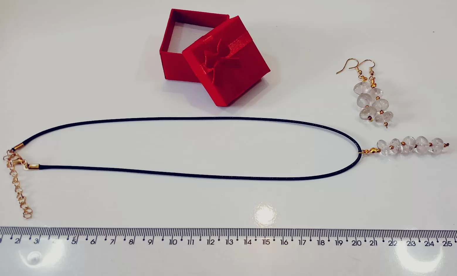 Colar Cordão Tipo Courinho com Pedra Cristal Quartzo + Pingente e Brinco 7° CHAKRA CORONÁRIO