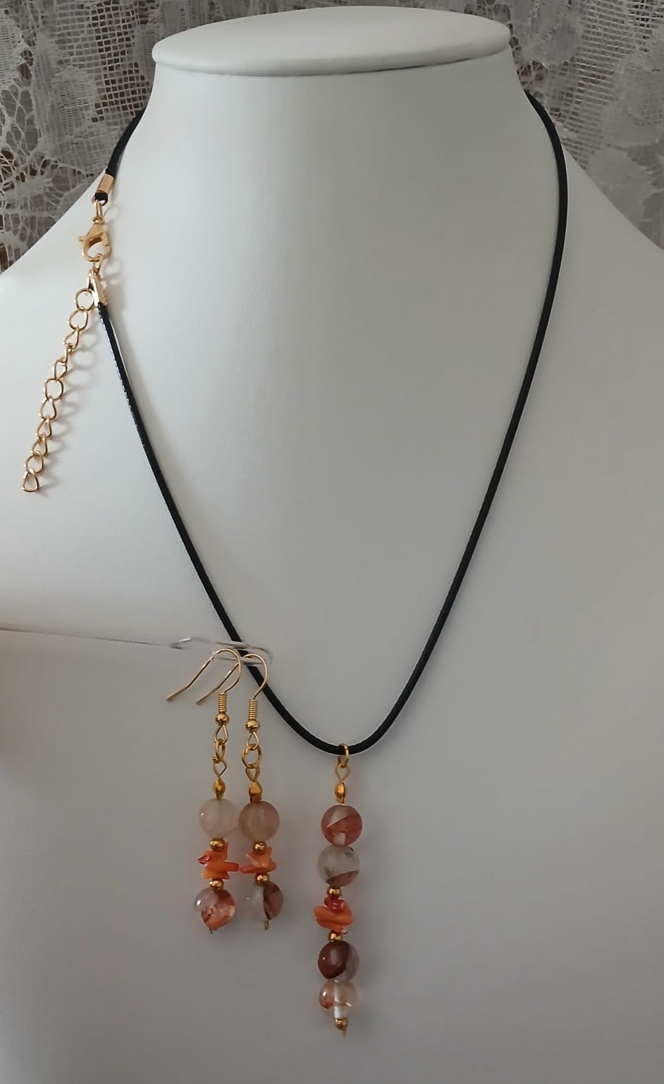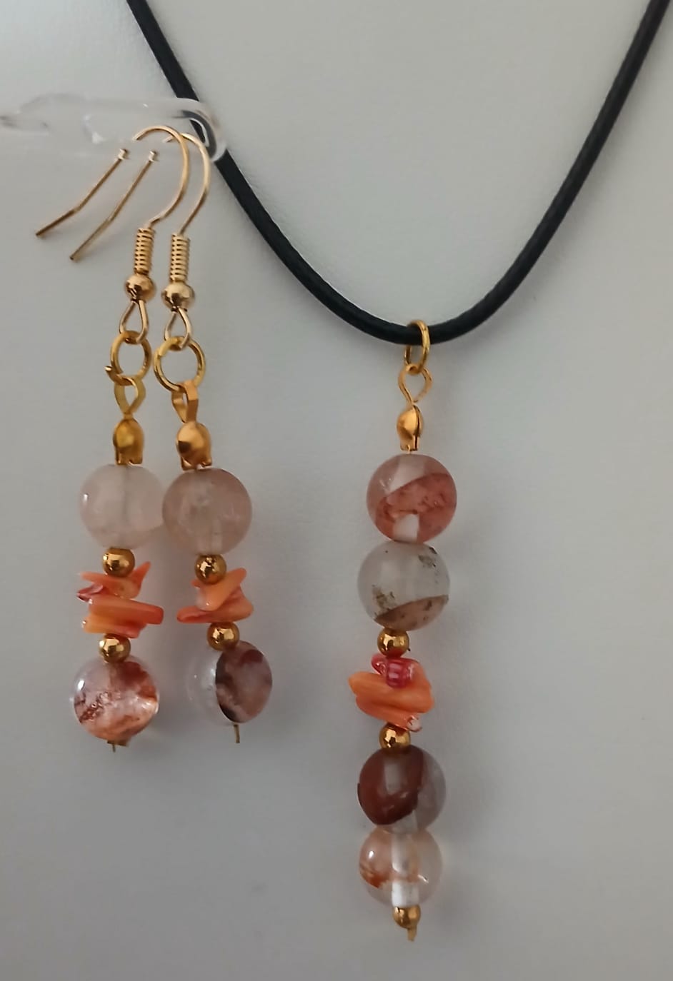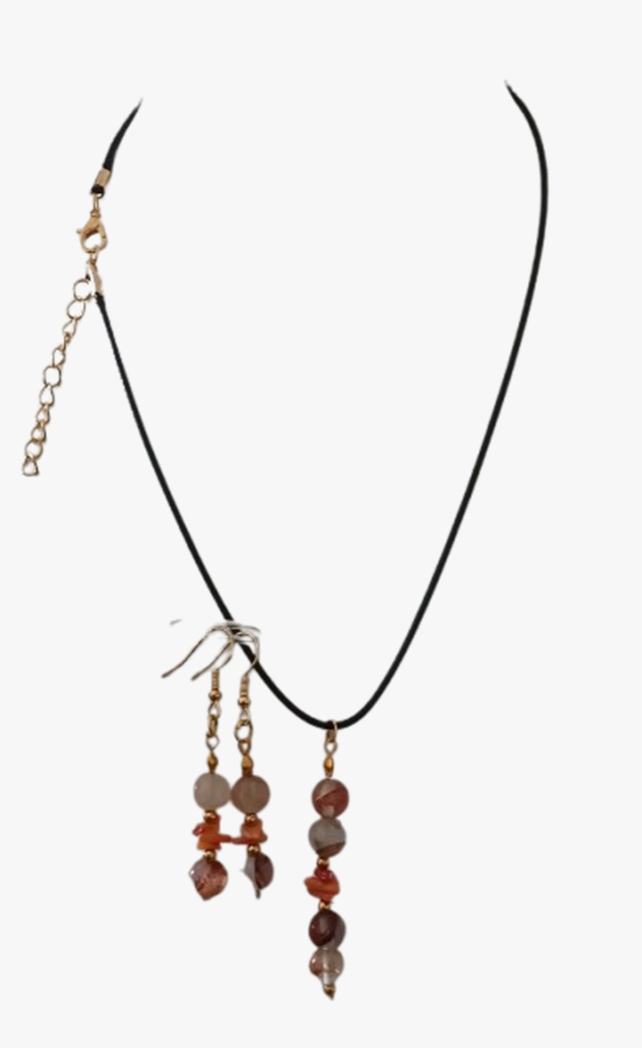 Colar Cordão Pedras Cristal Ágatas e Coral Philippines Cr620