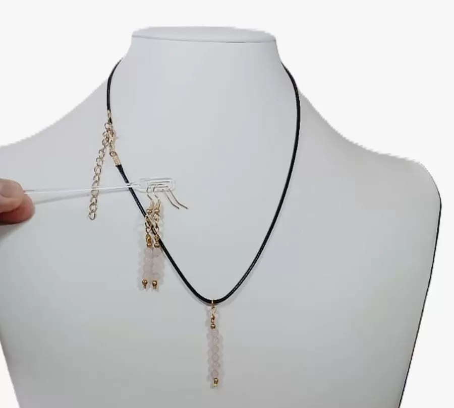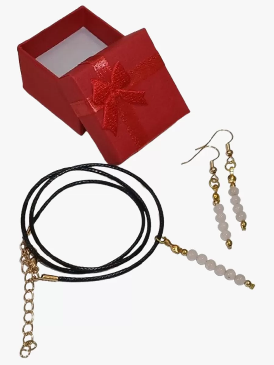 Colar Cordão Quartzo Rosa Lapidado 4° Chakra Cardíaco + Pingente e Brinco.