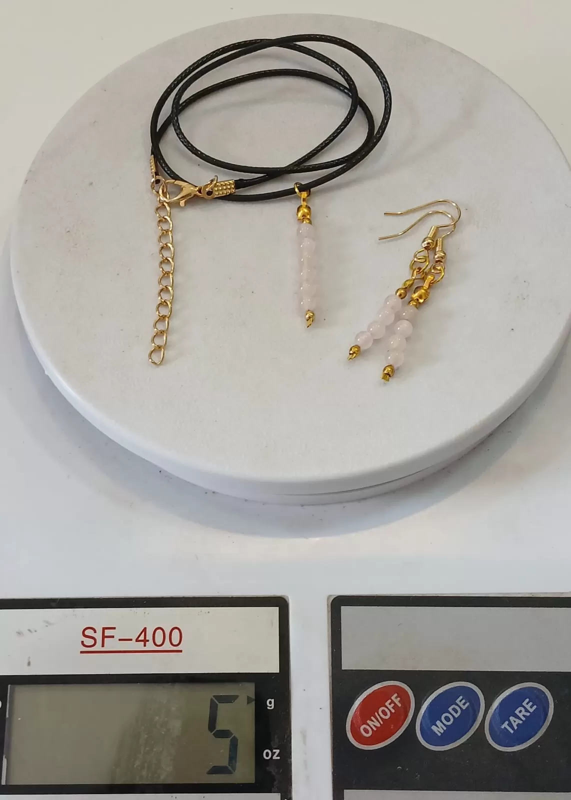 Colar Cordão Pedra Quartzo Rosa Lapidado 3mm 4° Chakra Cardíaco com Pingente e Brinco.