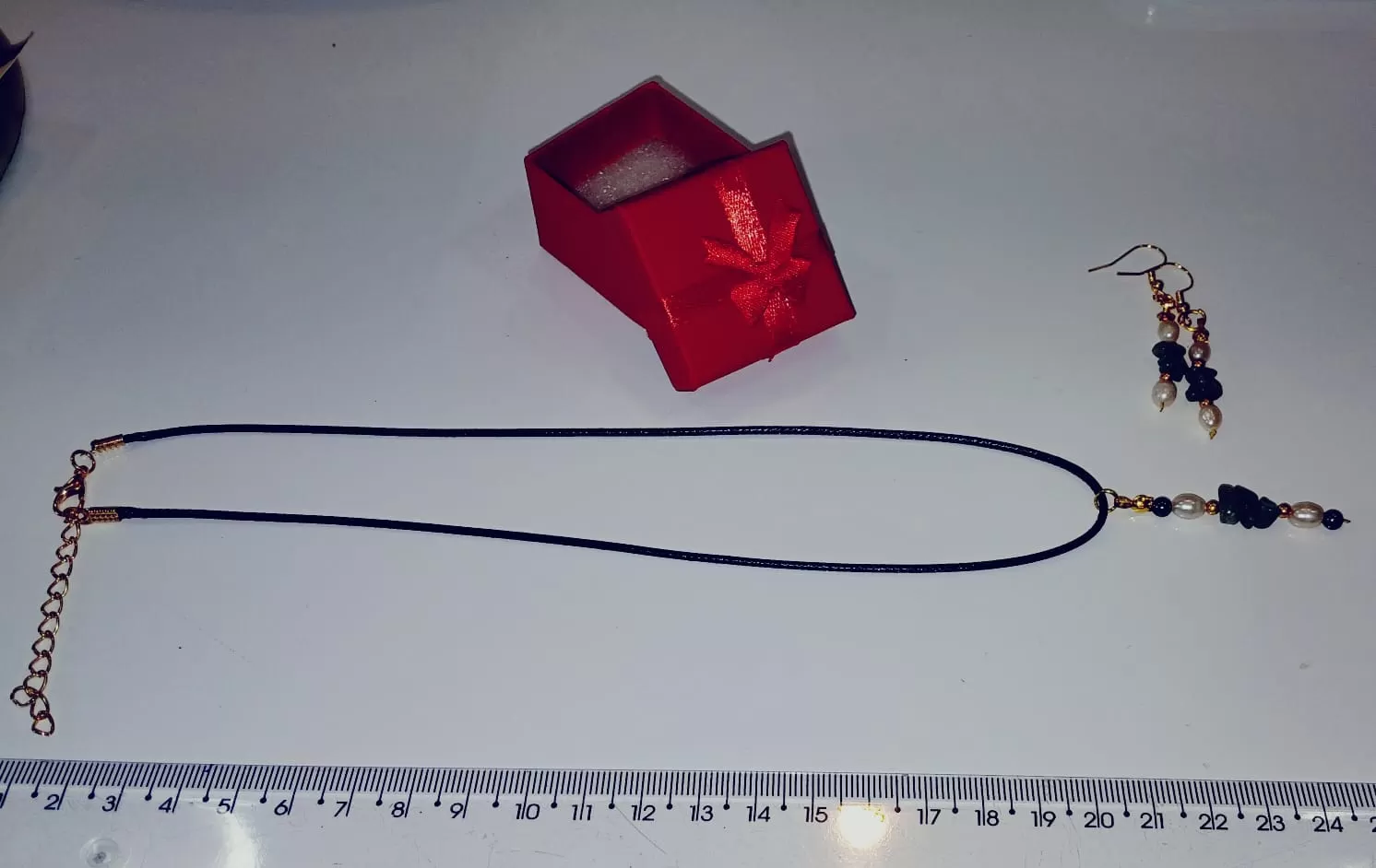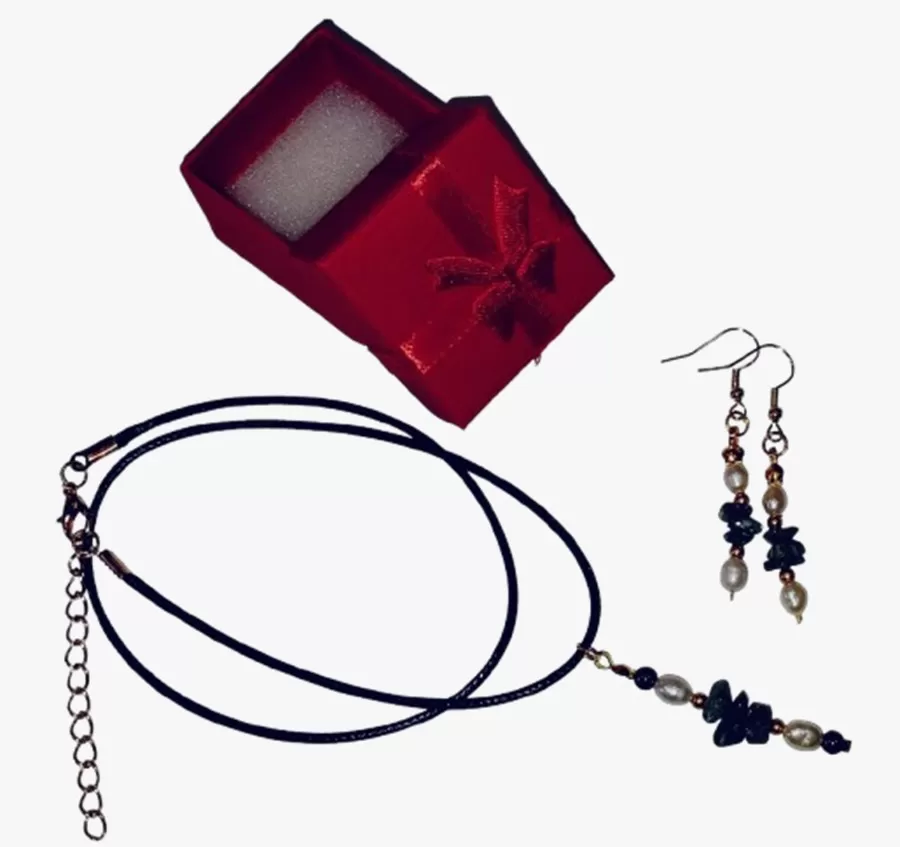 Colar aberto 50cm – Fechado 22cm + Pingente 4cm – Brinco 2,5cm