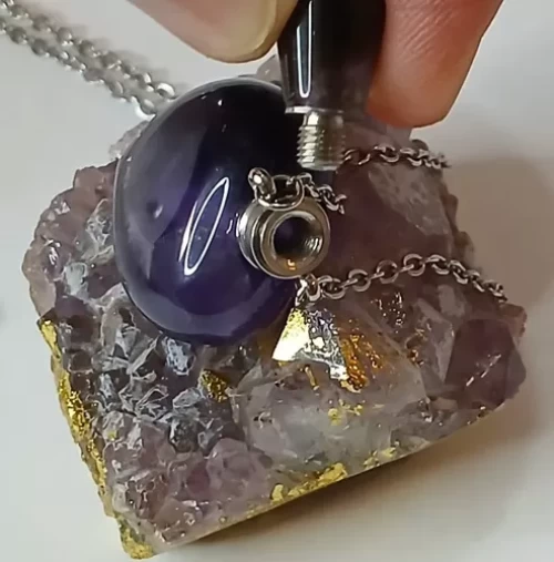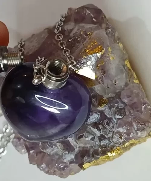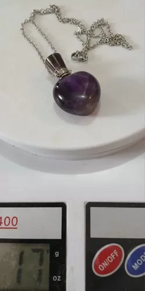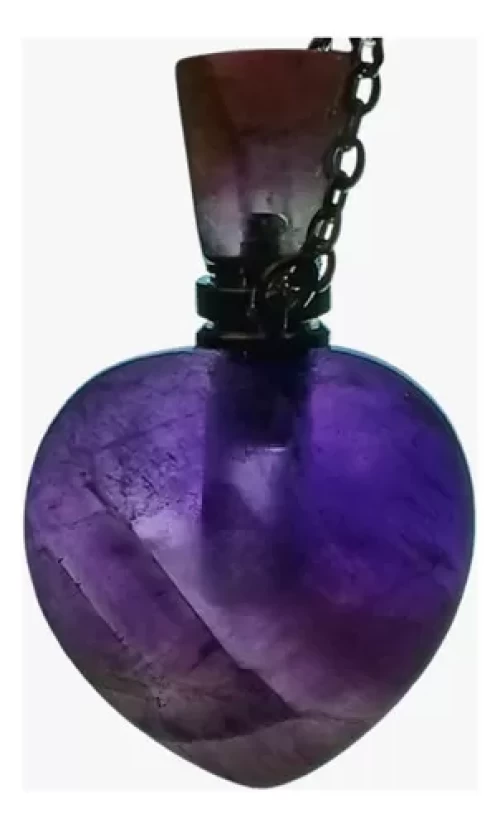 Colar Corrente de Aço, Feixe Lagosta com Pingente em AMETISTA lapidada na forma de CORAÇÃO, DIFUSOR AROMÁTICO PARA TERAPIA, VEJA ABAIXO.