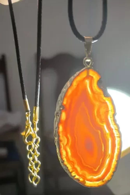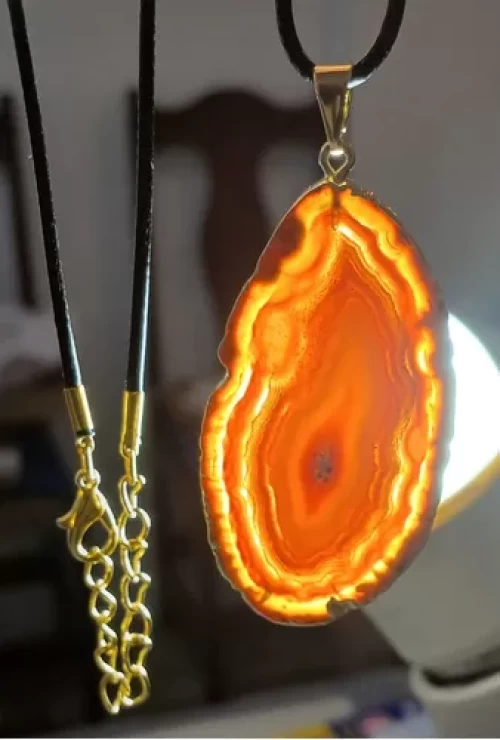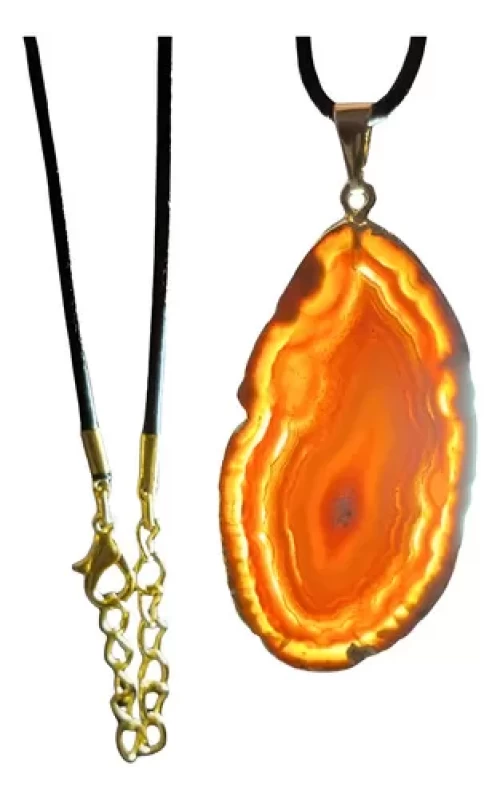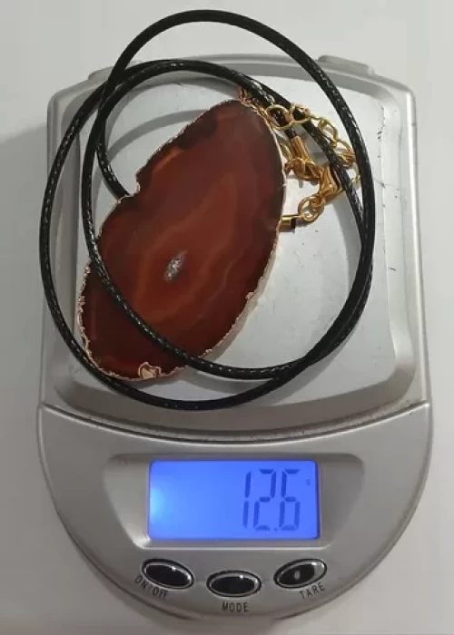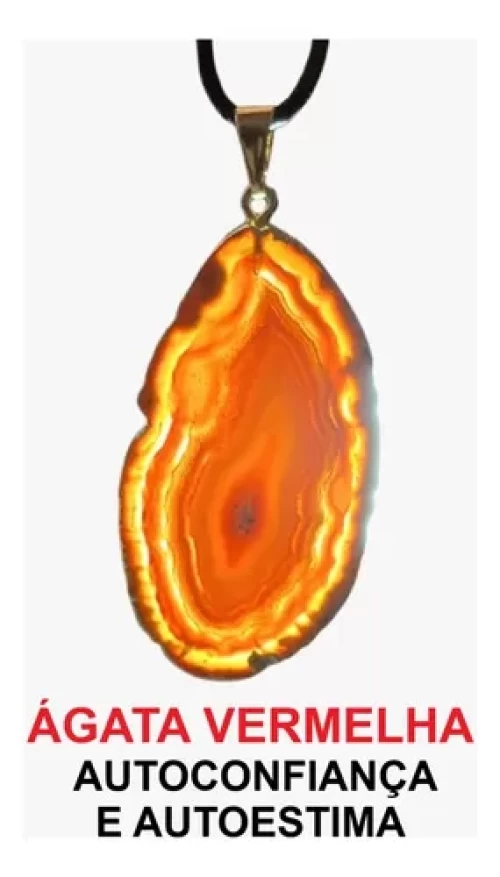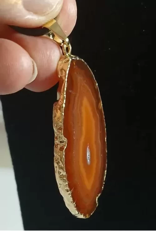 Colar Pingente DE ÁGATA VERMELHA c/ BANHO DE OURO.