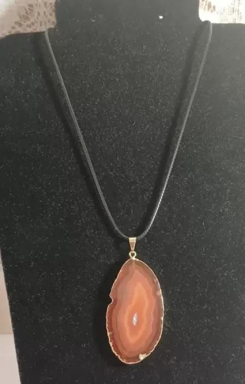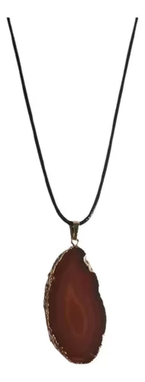 Colar Cordão Imita Courinho com Pingente DE ÁGATA VERMELHA (COR MARRON, PORÉM O NOME TÉCNICO EM GEMOLOGIA PARA AS PEDRAS DE COR MARRON É “VERMELHO”) CHAPINHA com BANHO DE OURO.