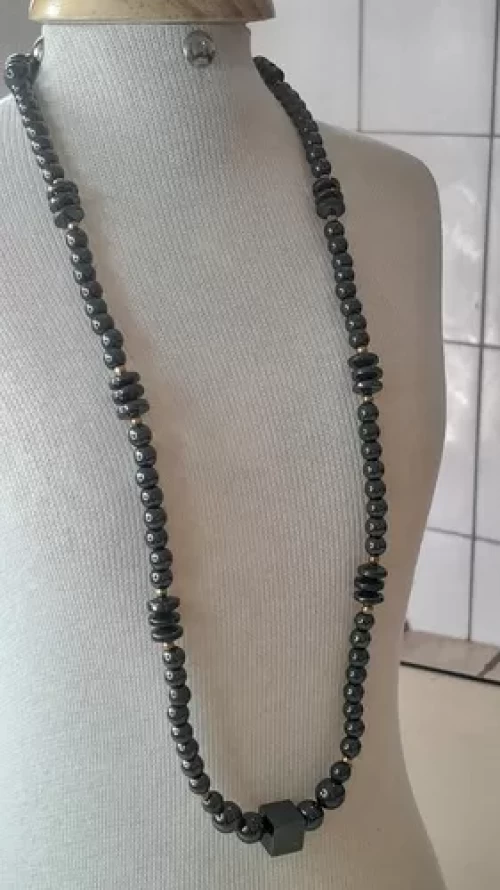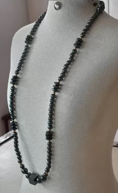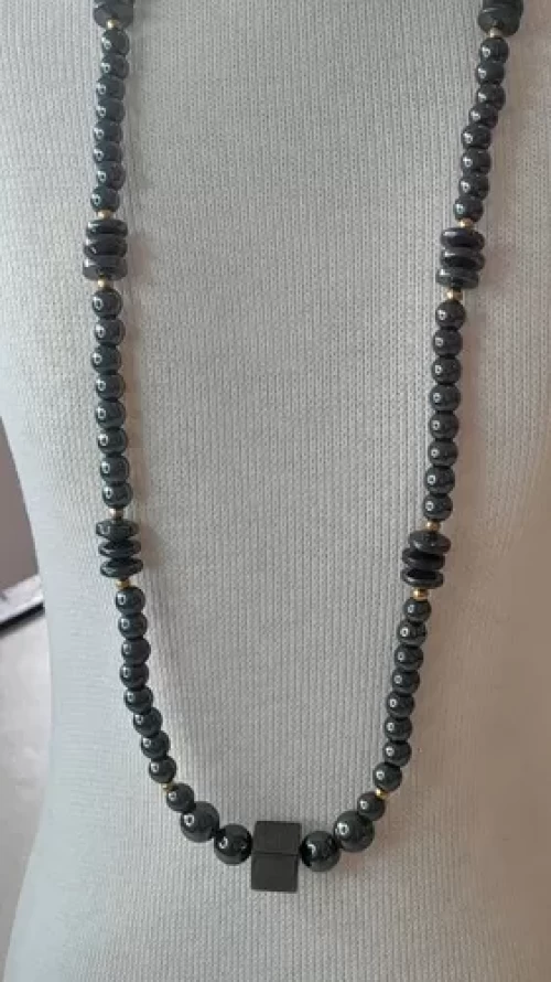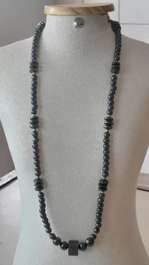 Colar de Hematitas Diversos Formatos, 4mm, 8mm,Disquinho e Quadrado 10mm. Peça Única Exclusiva Confecção Própria Artesanal.
