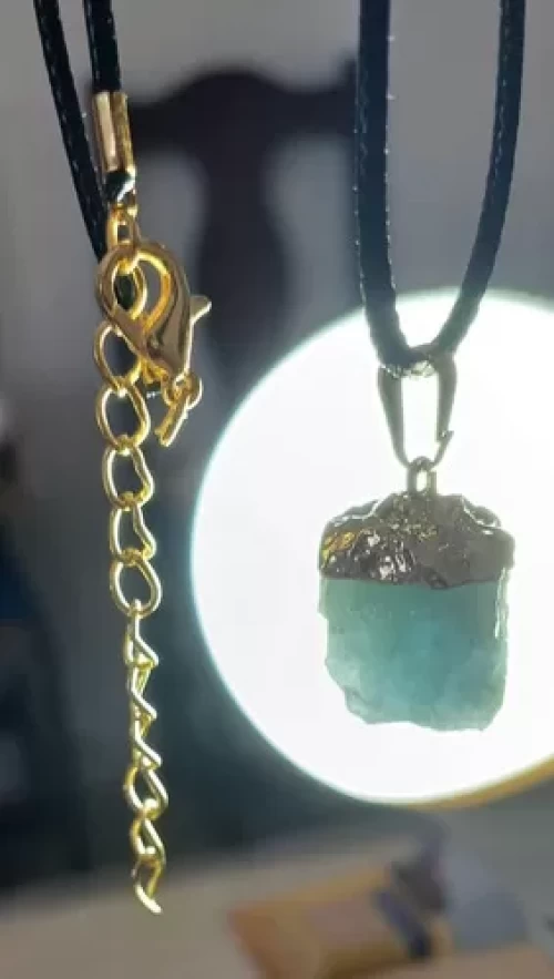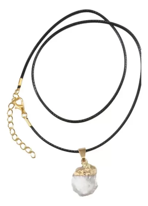 COLAR CORDÃO PRETO IMITA COURINHO com Pingente DE PEDRAS NATURAIS.