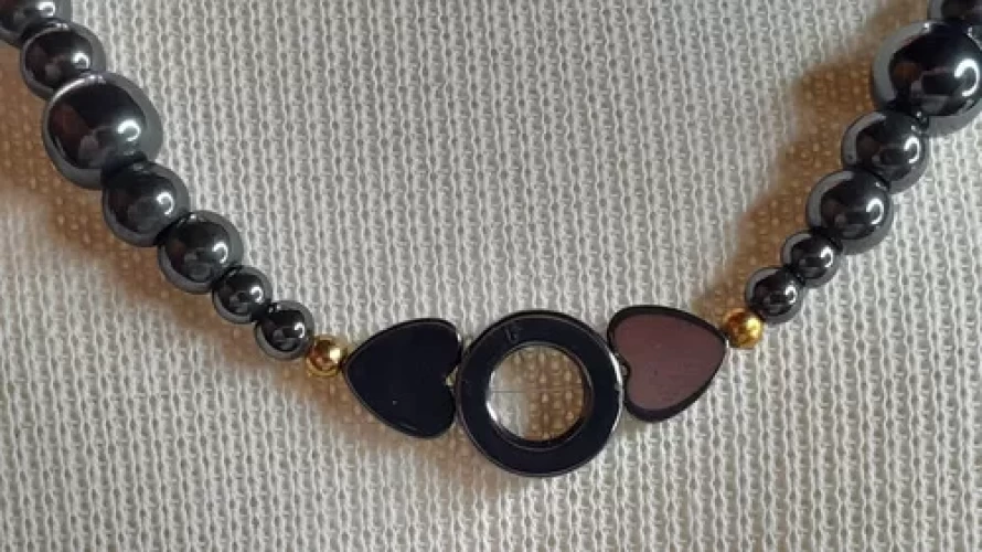 Colar de Hematitas Coração, Pneuzinho, Esferas 3mm, 4mm e 8mm. Peça Única Exclusiva Confecção Própria Artesanal.