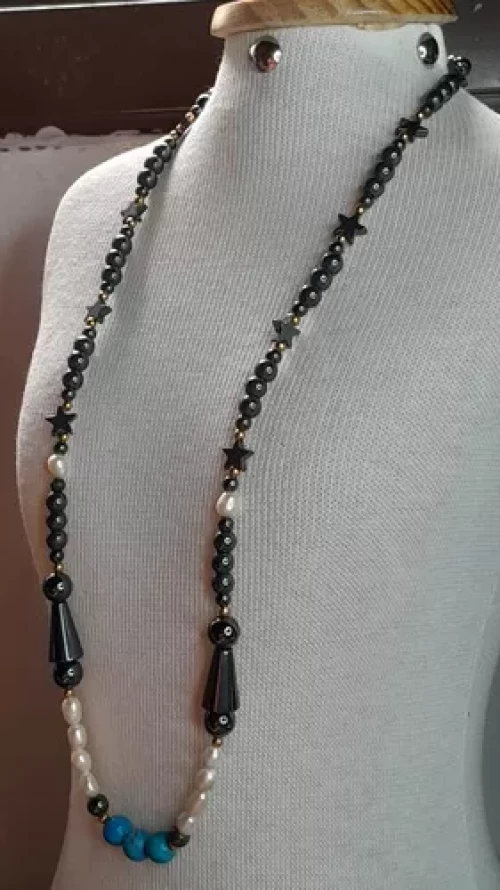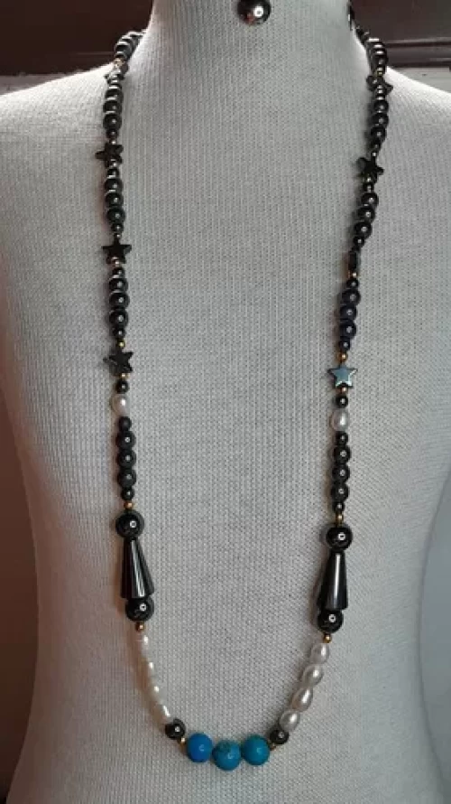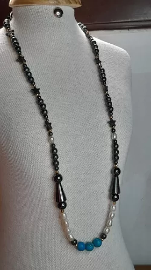 Colar Turquesa Pérolas Naturais e Hematitas. Peça Exclusiva Confecção Própria Artesanal.